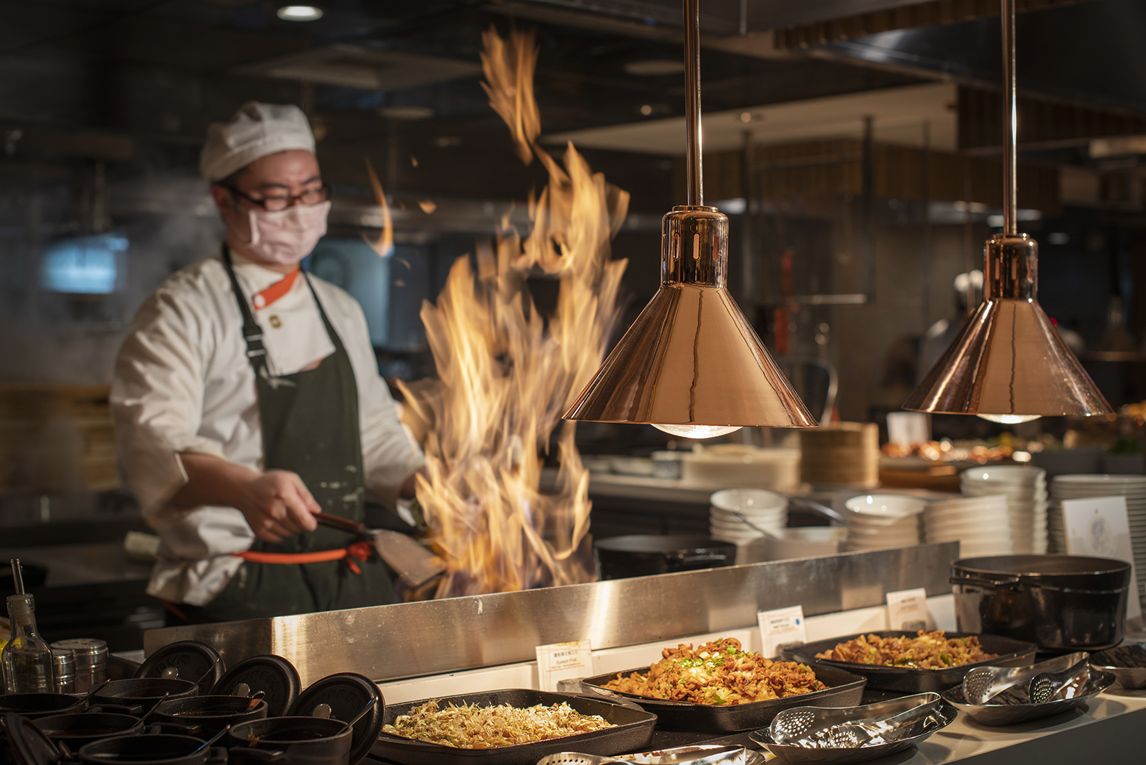 ▼西安麵點師傅純熟勁道現做多樣手工麵點,不小心就再來一碗番茄牛肉麵、哨子麵;吸引目光的還有掛滿廣式燒臘的香宮精選美味,連續三年米其林餐盤推薦的果木片皮鴨捲餅亦是必嚐經典;無法抗拒現做日式天婦羅與串炸美味,各種海鮮肉品蔬菜轉眼變成一串串裹著酥脆金黃外衣的和風小食;亞洲料理區一樣精采可期,泰國、新加坡、馬來西亞、印度等地方特色美食,一站式嚐遍;蒸籠點心不停冒出蒸汽白煙,讓人好奇想親嚐美味;滋滋作響鐵板料理,隨選隨點的山珍海味立即奉上。