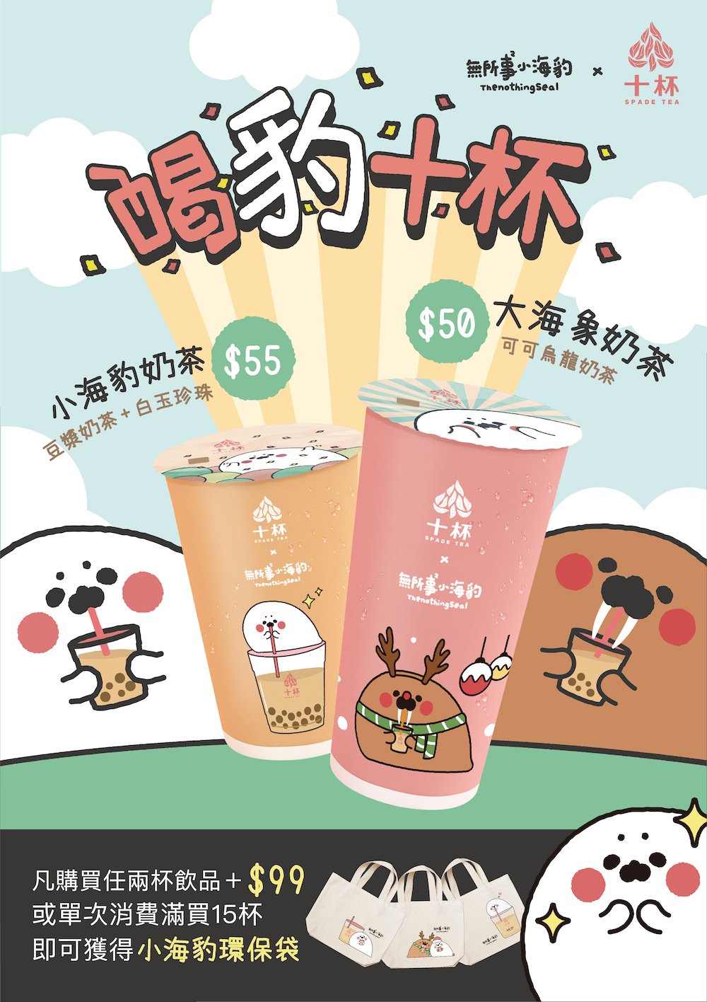 【全台】還不給他「喝豹」♡ 十杯超萌聯名「小海豹珍奶」 3款插圖提袋加購帶回家~