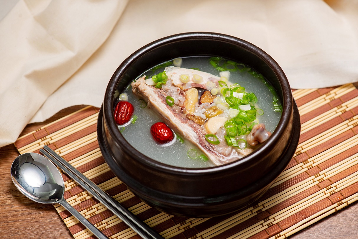 ▼而在必嚐的韓式家常菜中,使⽤韓國頂級秘製調味料調製成獨特的韓式醬料,讓「SAIKABO」家常菜別具一格,包括石鍋拌飯、蔘雞湯、海鮮煎餅等,而台灣韓式料理少見的牛骨湯、燉煮五花豬、水冷麵及明太子等家常菜也能品嚐到。鮮美的牛骨湯是韓國人的暖身美食,單點280元,牛骨經過長時間熬煮後,清爽湯頭帶有醇厚風味,入口即化的牛肉搭配冬粉及天然日曬鹽,天冷時來上一碗暖身暖心。而「燉煮五花豬」單點價330元,嚴選具驗證的信功⾁品豬肉,經過長時間燉煮後,口感軟嫩吃得到原味香氣。