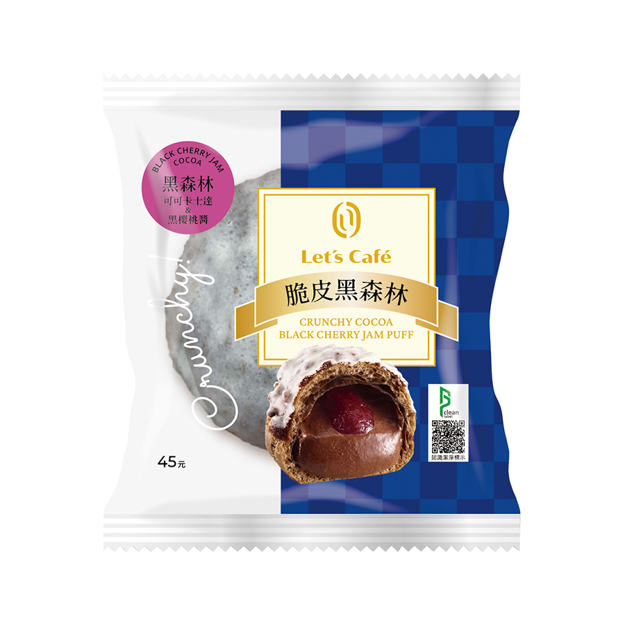 ▼「脆皮黑森林泡芙」(NT$ 45)以黑森林蛋糕為概念,用黑巧克力卡士達,搭配酸甜黑櫻桃醬結合頂部白色糖霜,交織出濃濃冬季風味,購買甜點搭單品咖啡,單品咖啡享半價!