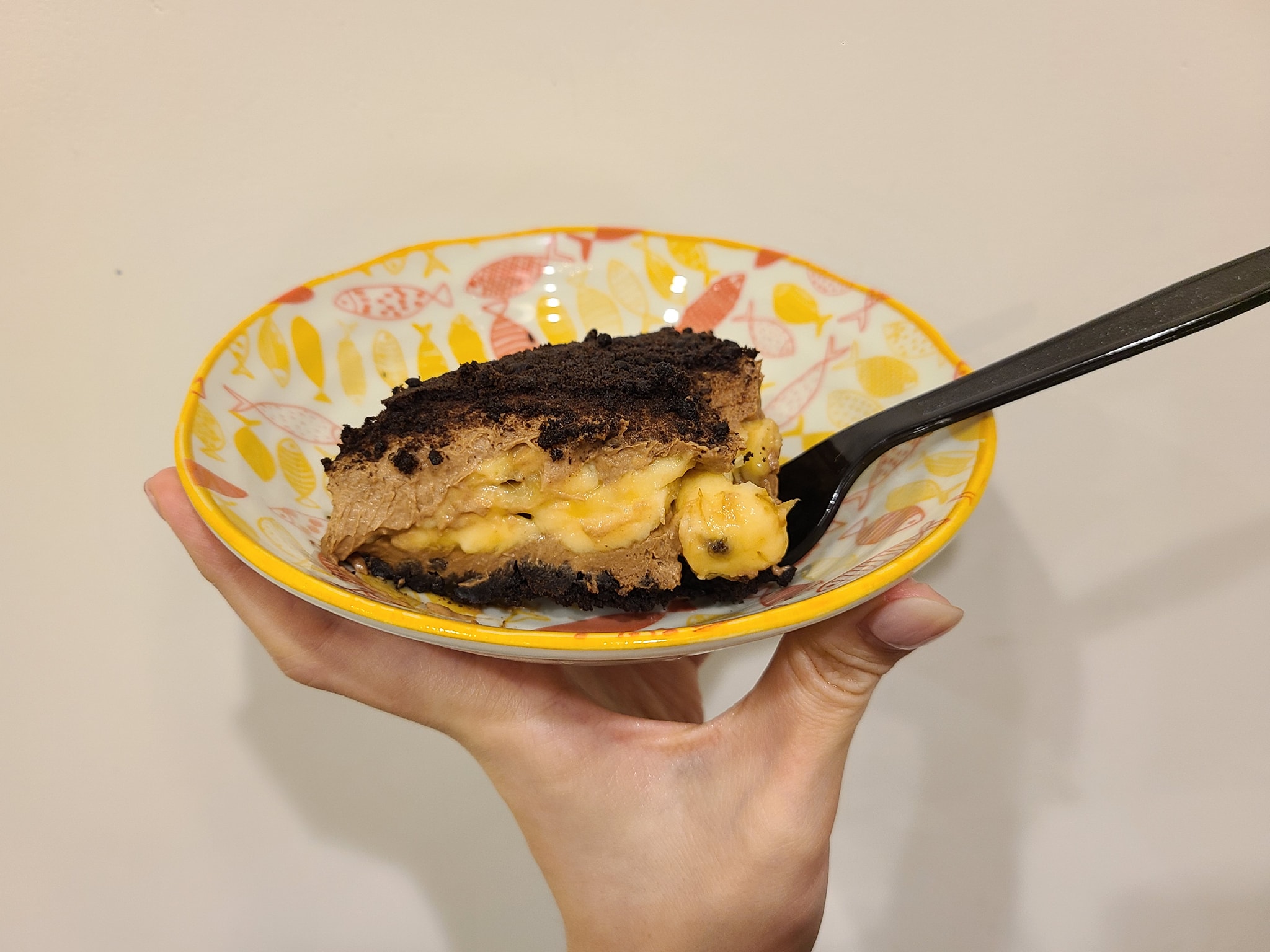 ▼中層使用73%比利時黑巧,加上奶油乳酪製作成生乳酪蛋糕,吃起來綿密滑順又濃郁,搭配微苦黑巧大人味、甜而不膩,包裹果香氣十足的新鮮香蕉,Cheese Cream與香蕉的微微黏稠感,加上OREO餅乾碎香甜酥鬆的口感,絕妙搭配與豐富層次讓人忍不住一口接一口。