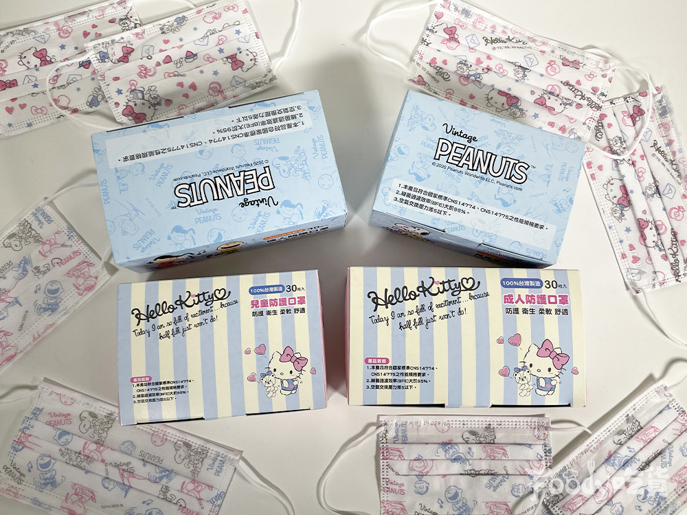 ▼由台灣老字號製造商「碩頂精密工業」推出的兩款安心口罩,分別是最萌教主「Hello Kitty」以及超高人氣的「史努比」兩款造型,粉嫩色系配上滿版圖案,就連外包裝盒也是可愛到不行!