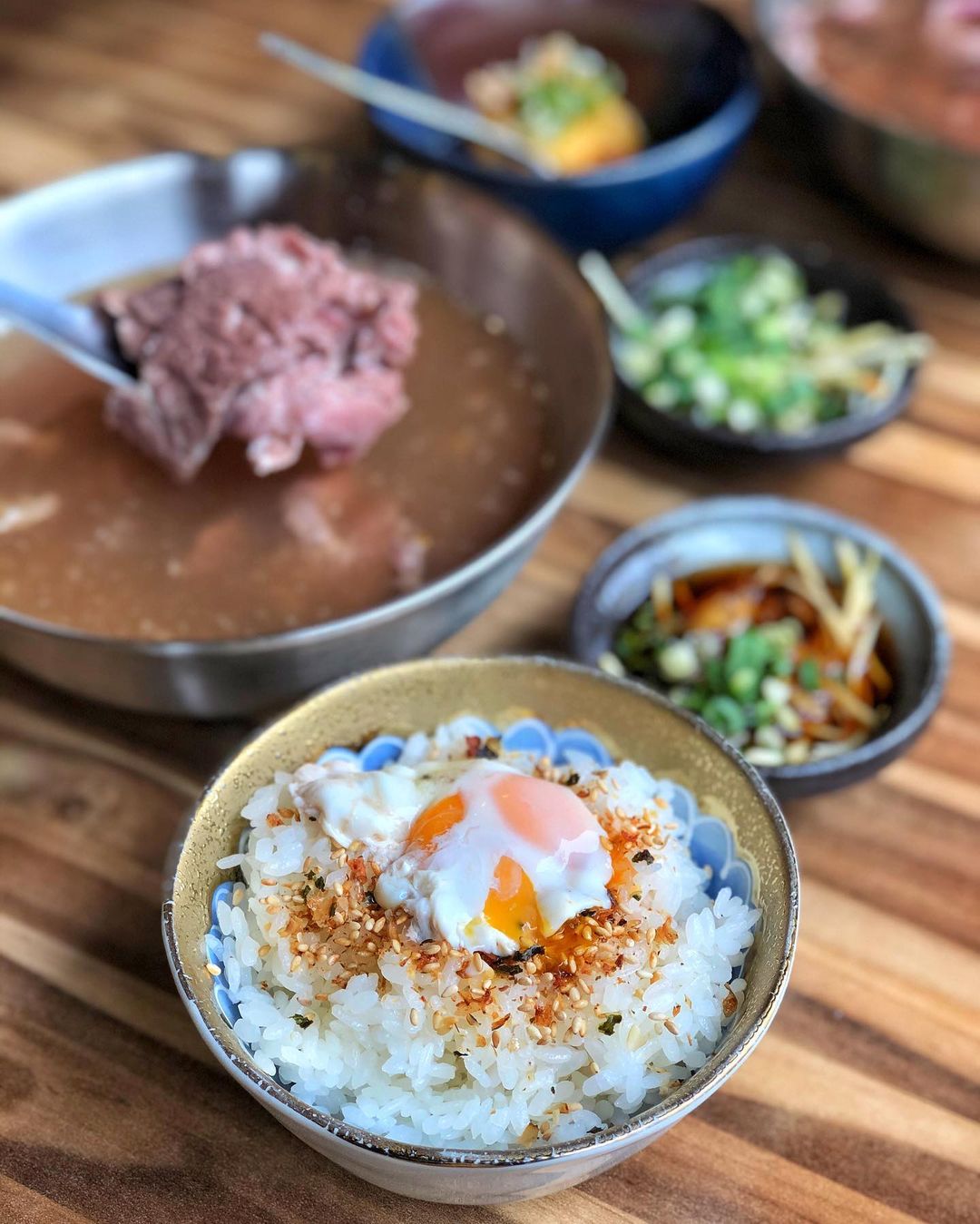 ▼除了招牌牛肉湯之外,足歹呷牛肉湯還有販售生魚片、沙拉、手捲、握壽司,把原本牛肉湯裡的半熟蛋放在熱騰騰的白飯上,讓蛋黃滋潤每一粒米再大口爬進嘴裡,一口牛肉一口飯,這組合實在太療癒了!