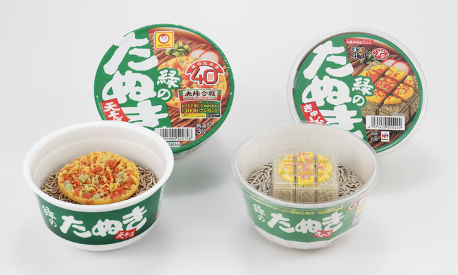 ▼兩大品牌聯手推出這款「綠色天婦羅蕎麥麵魔術方塊」(緑のたぬき),使用3D列印技術,將東洋水產的人氣泡麵完美複製,泡麵盒裡還有說明書,還特別用泡麵調味粉包裝的樣式做設計,每個細節都超用心啊!
