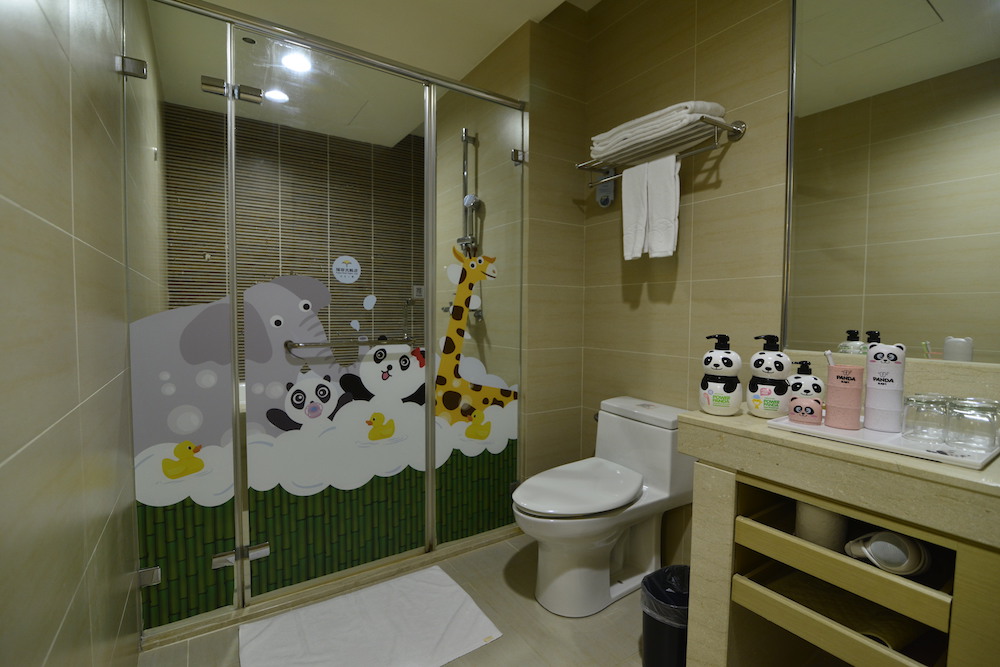 ▼客房內還有小朋友最愛的貓熊帳篷,內有動物保齡球、貓熊積木還有遊戲桌;浴室備有專屬的貓熊牙刷及漱口杯組,還有可愛的貓熊洗沐系列,淋浴間透明玻璃上也有正在洗澡的圓寶;枕頭上還有貓熊家族,一起與小朋友入睡,在夢裡相見,一夜好眠。