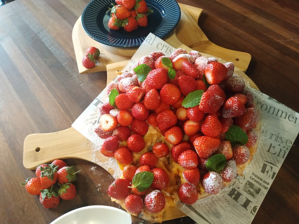 2、壽星消費加價99元,可享草莓塔pizza,壽星本人幾歲生日,pizza上就堆疊幾顆新鮮草莓。