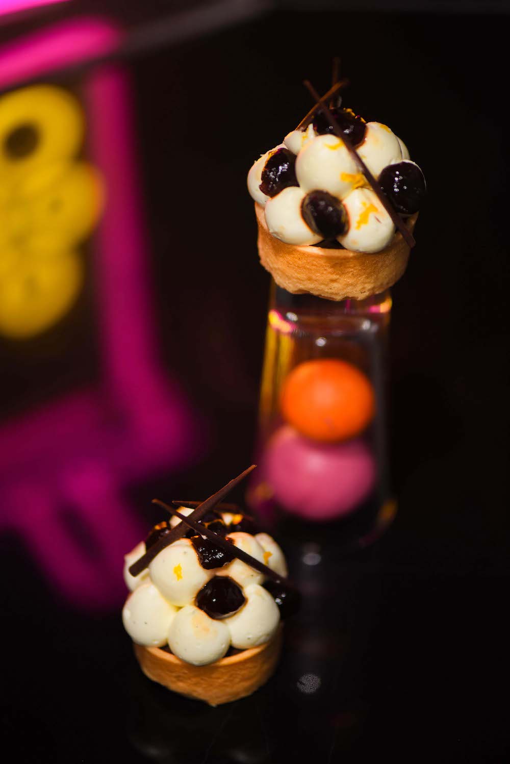 ▼「紅茶拿鐵巧克力珍珠塔」主廚以下午茶經典品項「塔」作為基底,內含帶有伯爵紅茶香氣的巧克力甘納許,上頭再以珍煮丹紅茶拿鐵珍珠、黑巧克力刮條與糖漬柳橙絲等巧妙點綴,整體口感層次分明,令人意猶未盡。