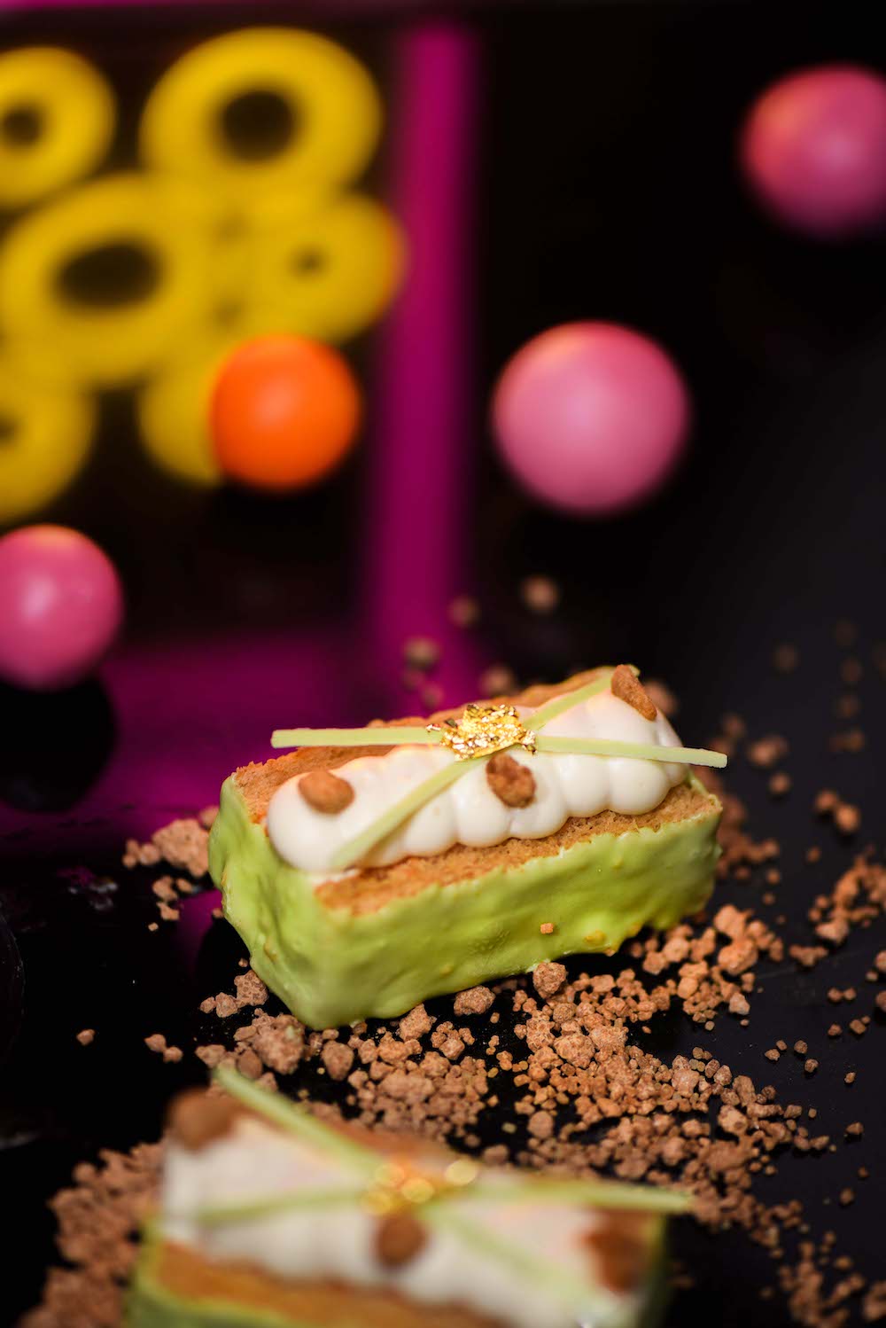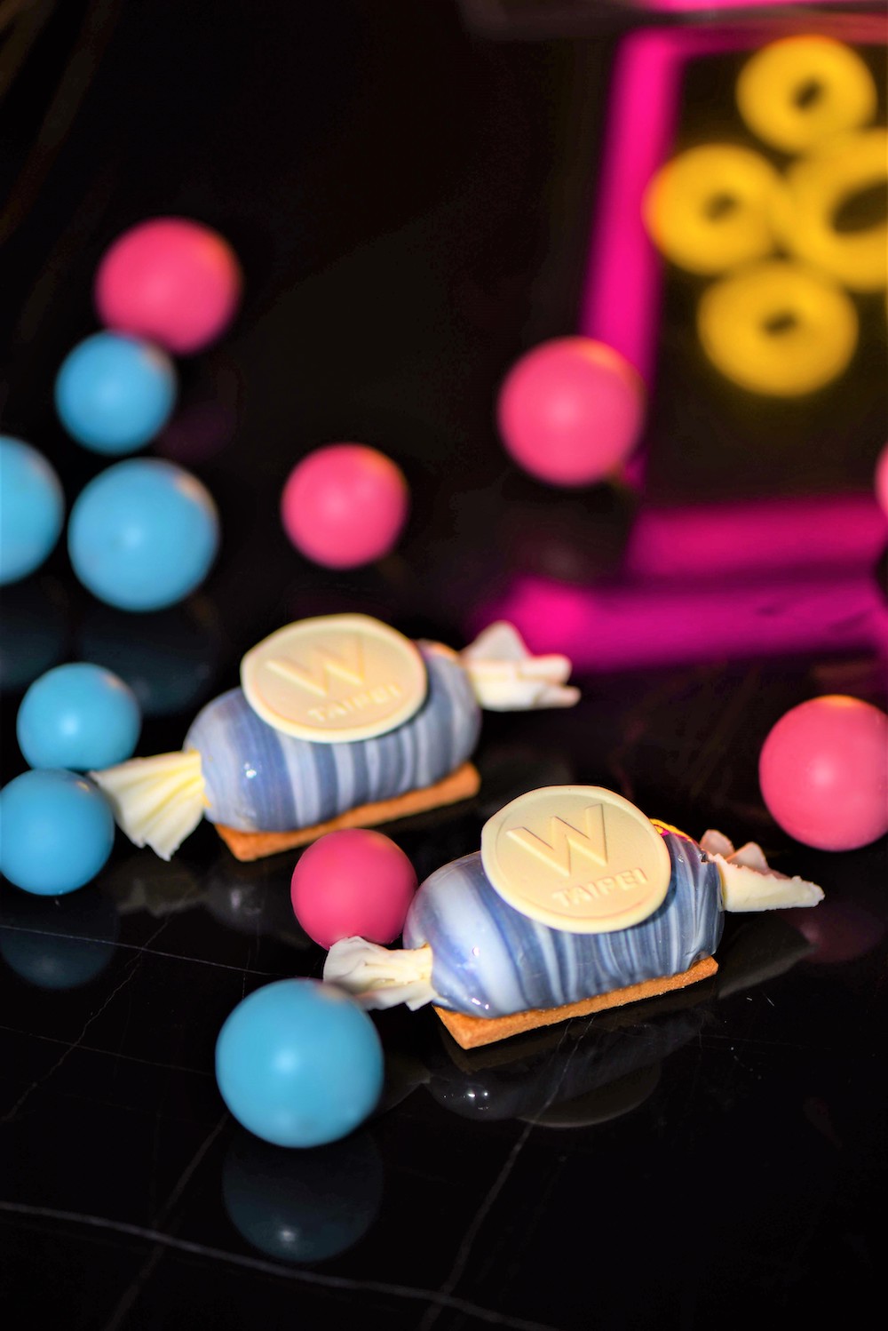 ▼「黑糖布丁慕斯」第一眼即被可愛的糖果外型吸引,主廚使用香草餅乾與黑糖杏仁蛋糕為主體,再以香草布丁與黑糖慕斯甜蜜內餡,鬆軟綿密好入口,絕對是拍照必備的美味道具!