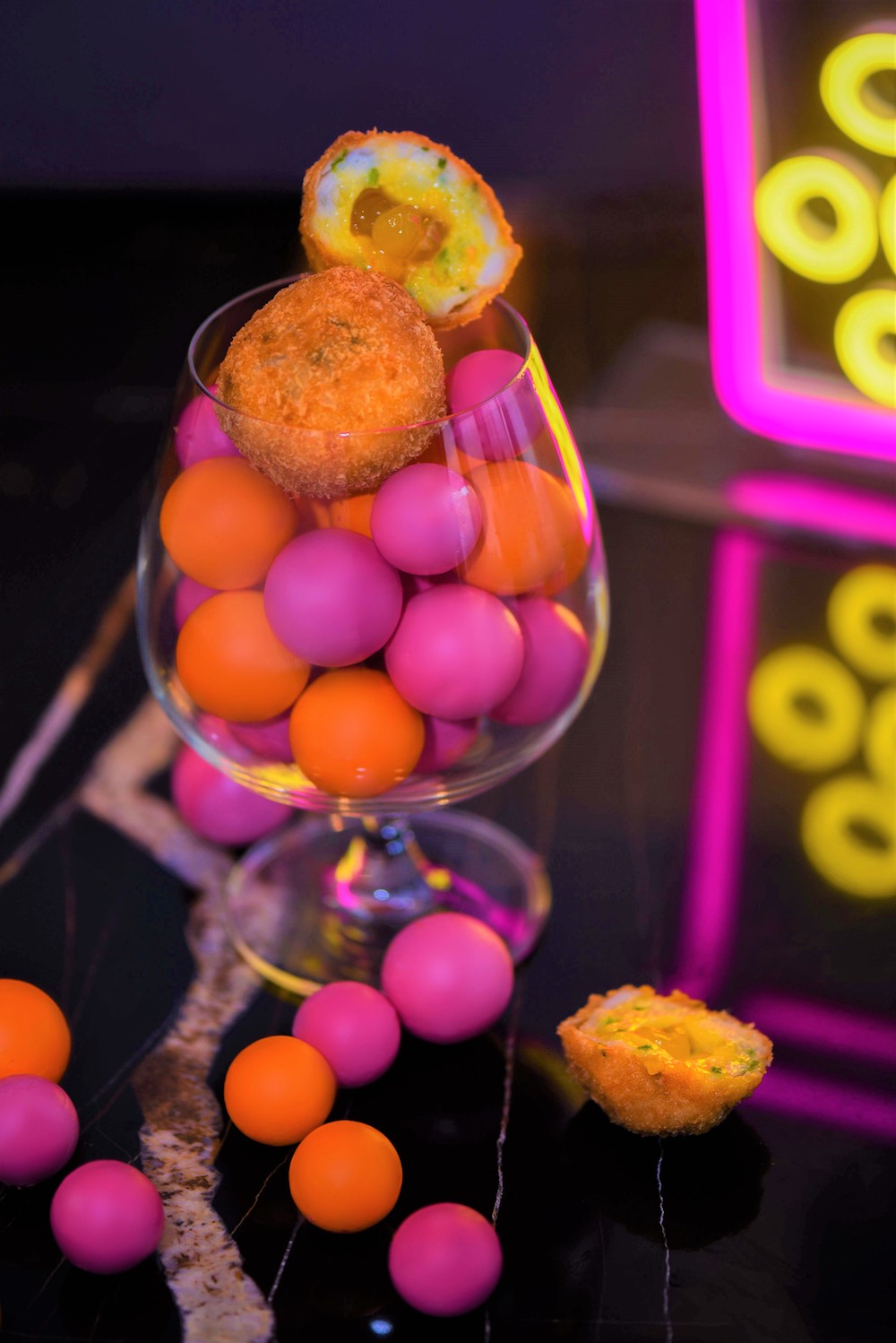▼「香芒珍心墨魚球」主廚別出心裁並使用特製芒果珍珠果凍將其融入在手工墨魚球中,入鍋烹後呈現流漿感,咬下之際墨魚的「鮮」與魚漿的「Q彈」,每一口都是驚喜不斷。