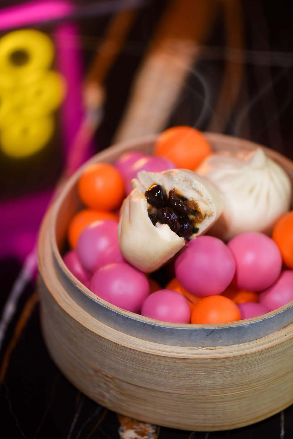 ▼「黑珍珠三杯雞粒包」主廚特別在麵皮中揉入珍煮丹黑糖,再將香氣撲鼻的三杯雞與珍煮丹黑糖珍珠包入餡,鹹甜口味相得益彰,令人一口接一口欲罷不能!