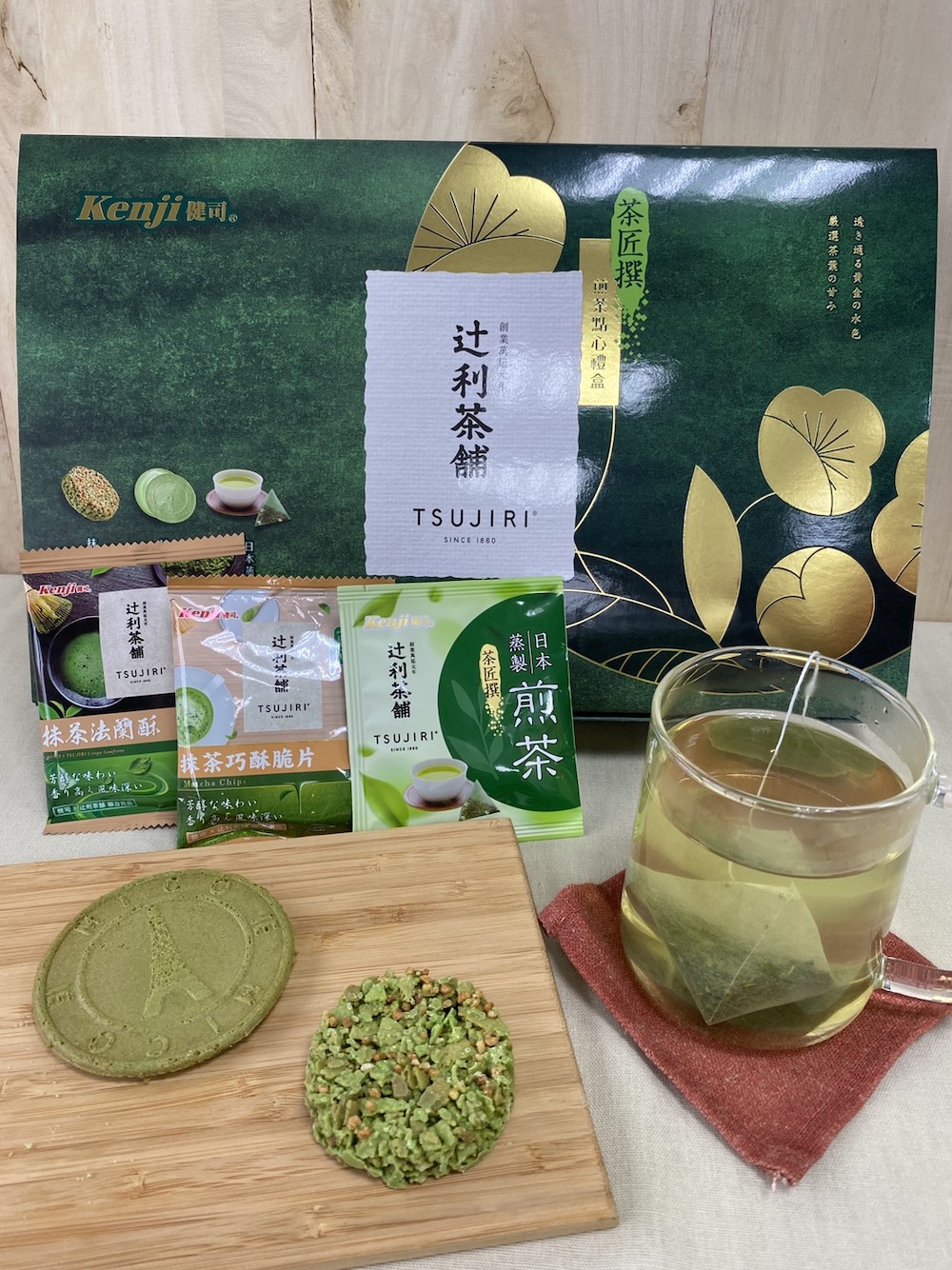 內容:健司 煎茶茶包40入、抹茶巧酥脆片6小包入、抹茶法蘭酥8小包入