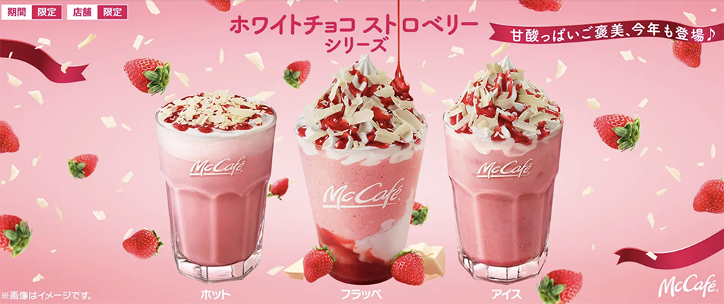 2021年01月09日草莓控看過來!每年日本麥當勞冬季限定的草莓季終於強勢回歸啦,今年以「白巧克力草莓」為主題,推出了三款超夢幻的白巧克力草莓系飲品,現在就趕快一起來看看吧!
