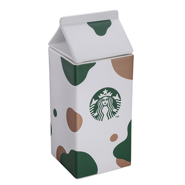 ▼值得一提的是,星巴克這次還推出了一系列超Q萌的牛奶盒造型馬克杯和儲物罐,牛奶盒上還有綠色與金色的斑點圖樣,配上星巴克的Logo真的太吸睛啦!