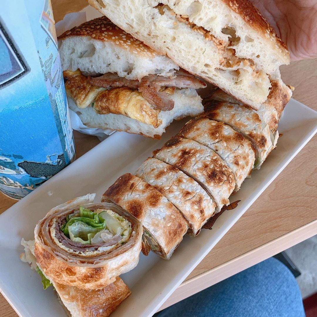 ▼隱藏在北投復興崗眷村巷弄中的「老爹手工蔥大餅」,看店名就知道這家必吃就是大餅啦!灑滿芝麻的大餅帶有無敵麵粉香,吃起來口感脆中帶有Q彈,越咀嚼還能嚐到一股芝麻香;大餅夾入豬排、煎蛋,吃起來還保有水分、不會過乾,簡單的鹹香美味、帶有麵粉淡淡的甜味,卻是擄獲超多老饕的心。