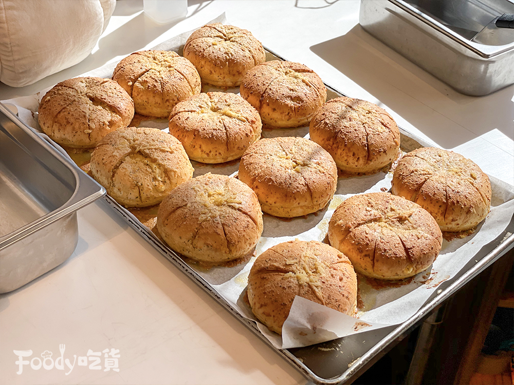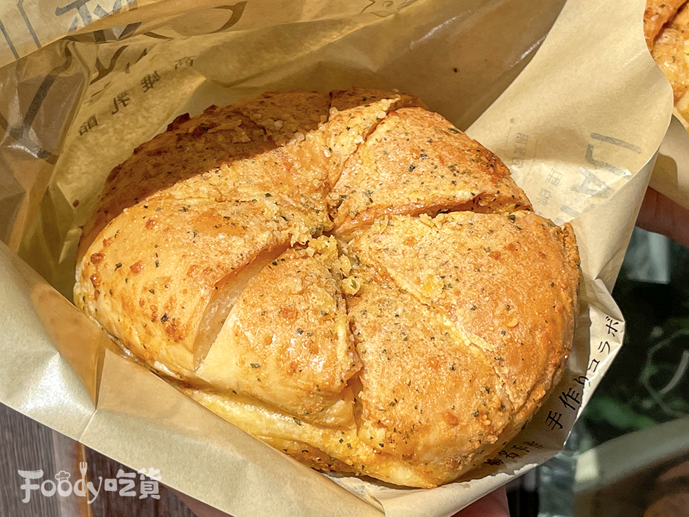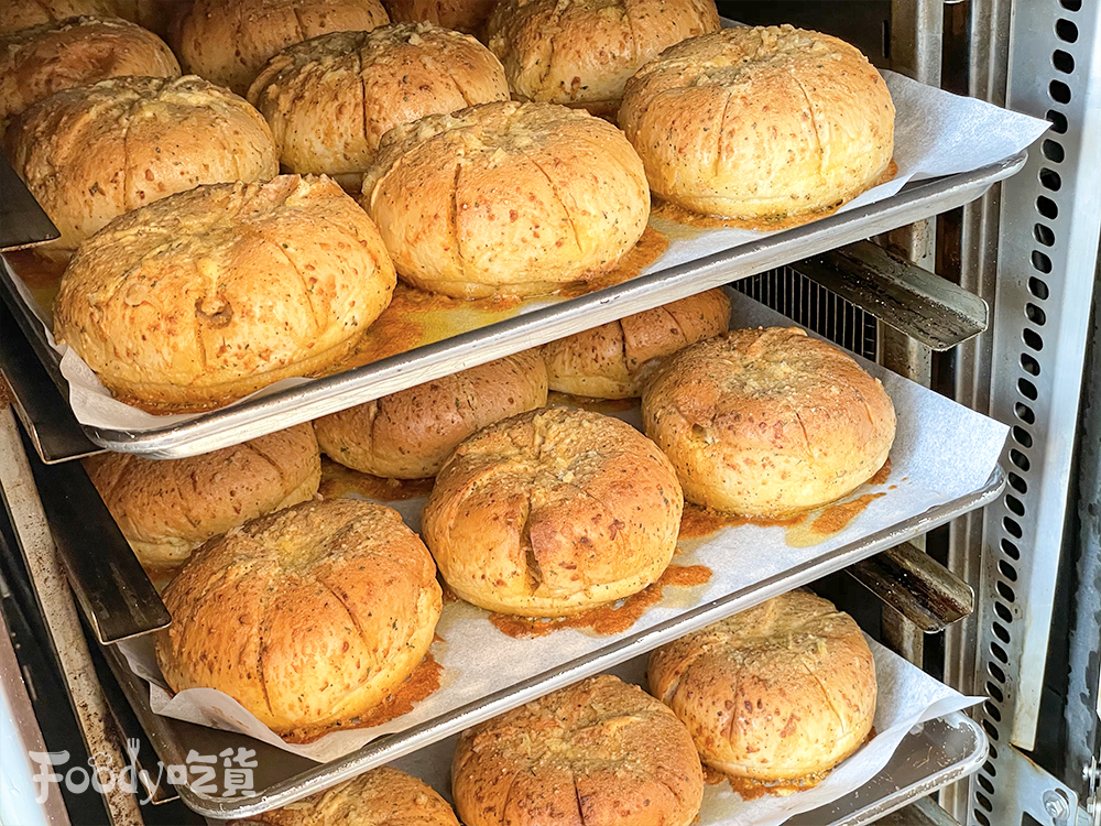 ▼手作現烤的八蒜包,吃起來外酥內軟,吃一口就能嚐到濃濃蒜頭香氣,對於愛吃蒜的人來說,這款麵包絕對會是你的心頭好啊!