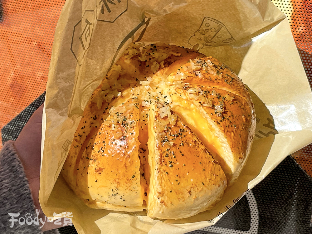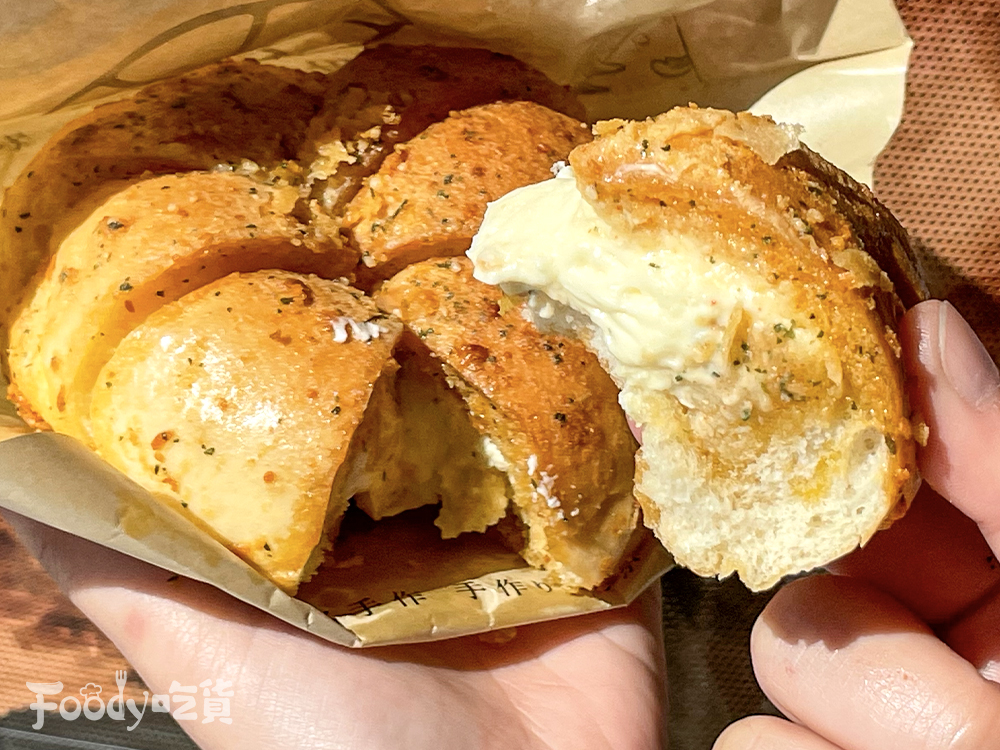 ▼除了有濃郁蒜味之外,八蒜包裡還藏了滿滿療癒的乳酪奶油餡,鬆軟的麵包配上絲滑乳酪餡非常對味,熱量是什麼先別管,吃完這塊八蒜包再去減肥吧~~