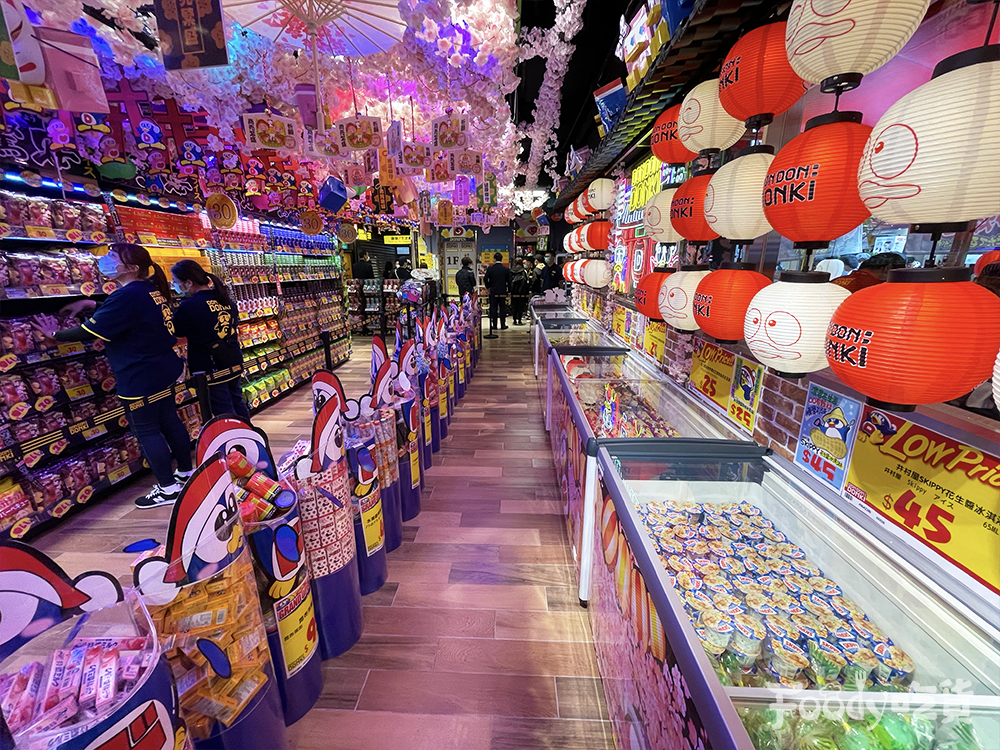 ▼「DON DON DONKI」首店選址在年輕人的時尚中心地──西門商圈,商場佔地廣達1615平⽅公尺,如同在日本逛唐吉軻德一樣,「DON DON DONKI 西門店」商場內的設計維持品牌一貫的獨特陳列風格,從美妝、零食、日用品,到生鮮食品、熟食、家電、玩具,各式各樣日本人氣商品,現在到DON DON DONKI 西門店通通都能買得到!