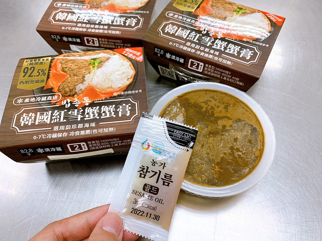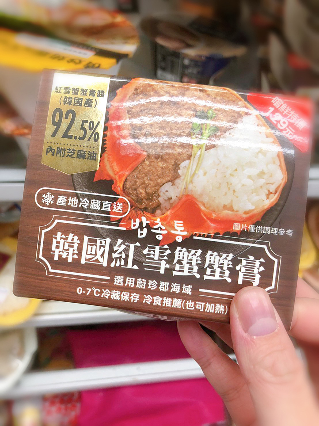 ▼旅韓便利商店必買熱銷蟹膏又來了!由韓國第一蟹膏大廠GOREMI生產的「韓國紅雪蟹蟹膏92.5% $129元」限量開賣中,產地冷藏直送、老饕首選92.5%蟹膏含量,內附芝麻油,推薦冷食搭配熱白飯使用,下飯的程度絕對是白飯小偷啊~(1/27-2/23 冷藏蟹膏/御料小館白飯任選第二件七折)