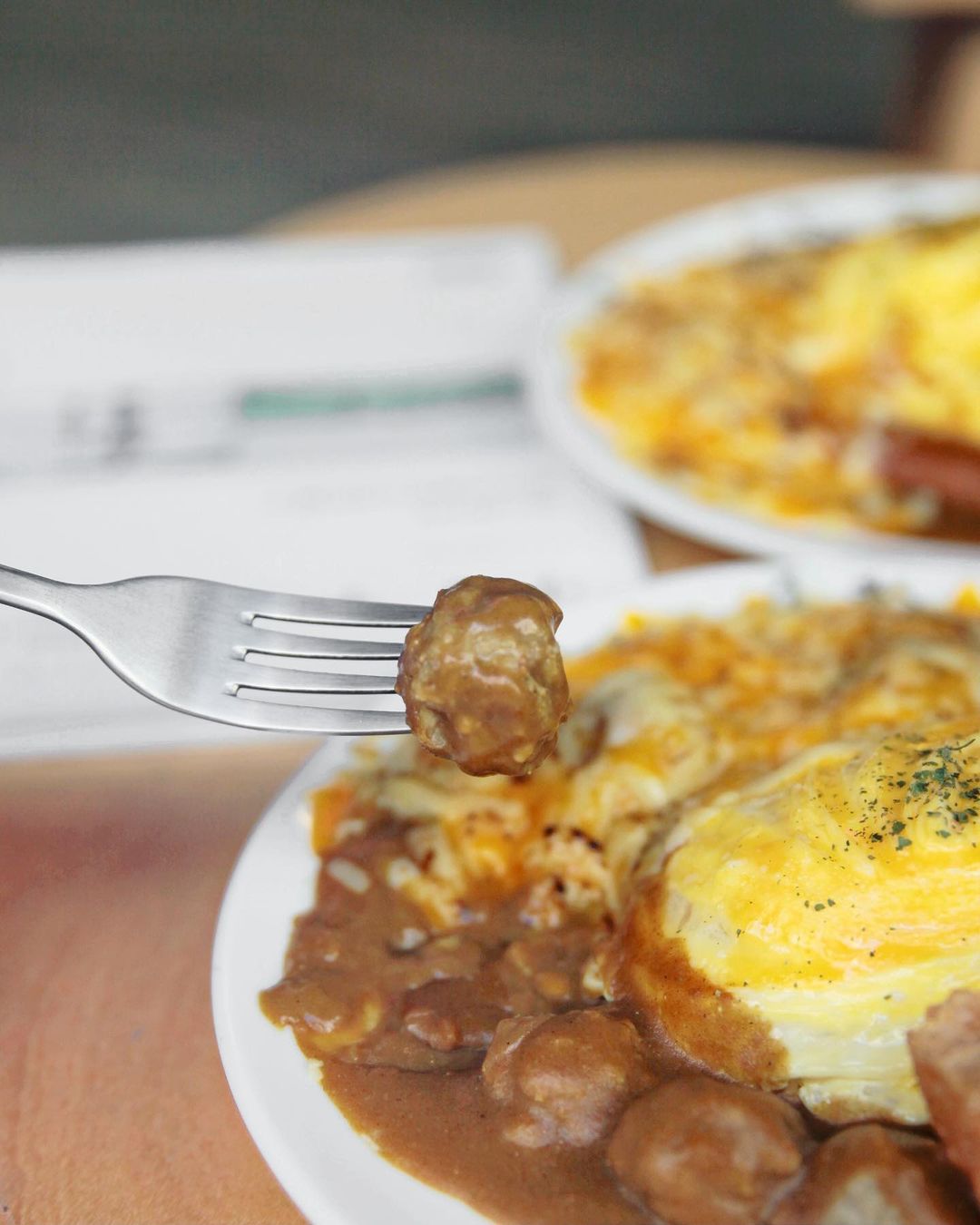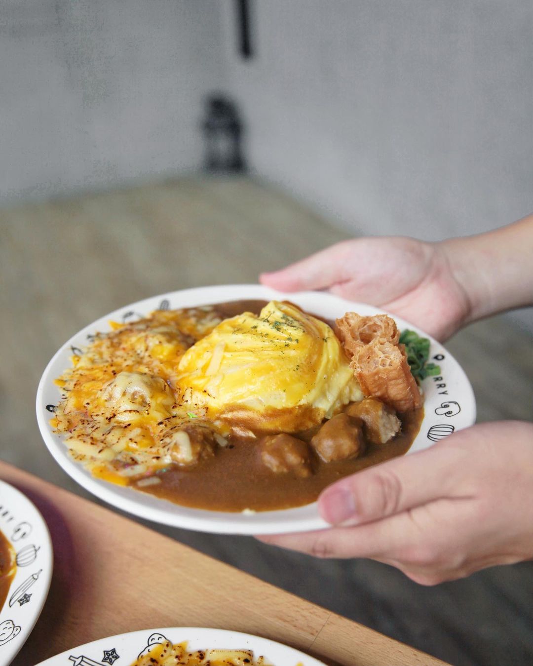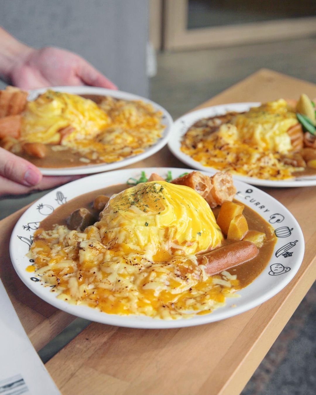 ▼像是這道「牛肉咖哩」(NT$ 180)微辣的咖哩醬辛口不嗆,牛肉份量多,肉質軟嫩入味,搭配美美的螺旋歐姆蛋以及炙烤起司,濃濃的咖哩味和牽絲炙烤起司根本天生一對,大口吃進嘴裡就是滿足!