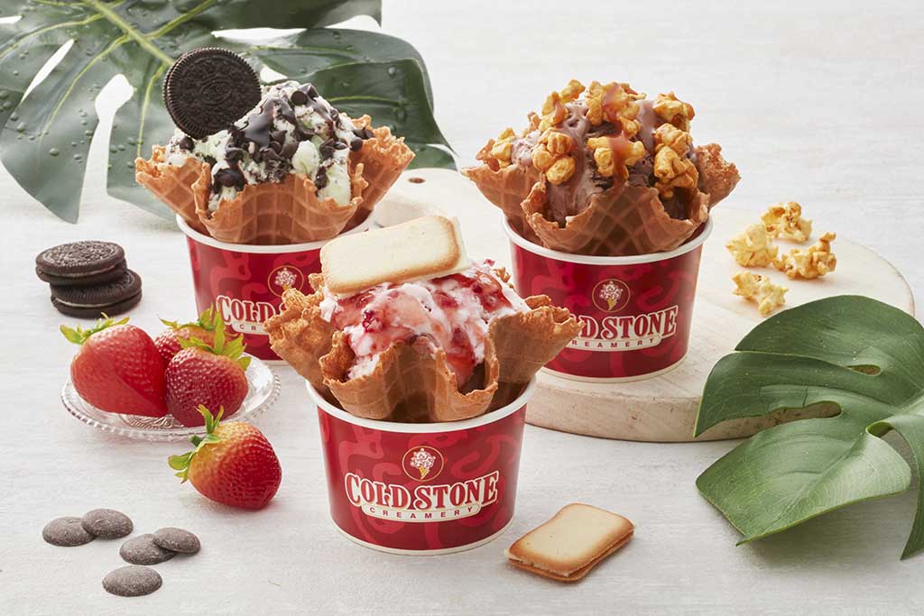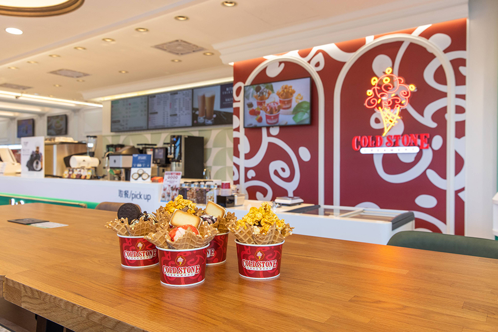 ▼「7-ELEVEN X COLD STONE複合店」將冰淇淋專賣店擠進1坪的空間,現點現做最快不到1分鐘就能品嚐到創意冰淇淋料理,獨家3OZ.份量就算一個人也能輕鬆品嚐,並耗時半年創造「藍莓起司范特西」、「草莓夾心派對」、「巧克力狂想曲」、「薄荷Oh My God」、「香奶冰風暴」5款全新經典款冰淇淋,同步也有單球販售5款不含配料淋醬的典藏冰淇淋,搭配原味脆餅品嚐更對味,每份售價89~129元,高CP值、零距離完美呈現COLD STONE專賣店充滿歡樂的無與倫比冰淇淋體驗。