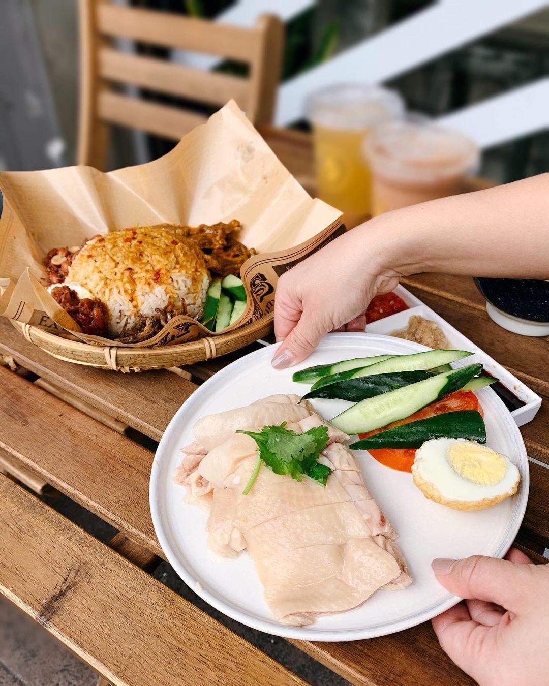 ▼雞腿肉底下的雞油飯,更是吸附滿滿雞肉精華,搭配清爽的小黃瓜、番茄和雞蛋一起吃,清爽開胃吃完超滿足!