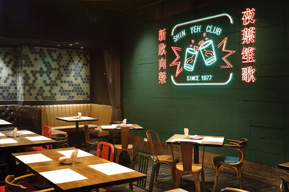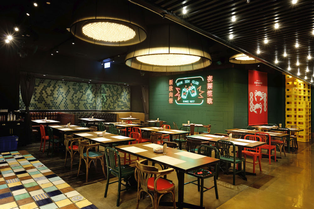 ▼一踏入「欣葉俱樂部」可發現有著與以往欣葉台菜截然不同的風格,四處可見的台灣菸酒產品與意象,除強調餐酒館的定位,也強化了獨特的台灣元素;色彩表現上有年輕新台式的霓虹燈色調概念,將欣葉台菜本身標準綠色與台灣常見的的紅色,均增添一點螢光感,傳遞餐廳台味且不失精緻的質感!