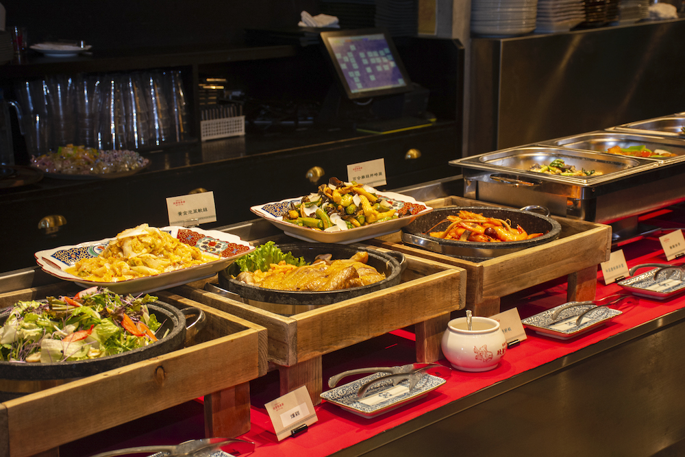 ▼為嘉惠附近密集的上班族,週間的午餐不僅以Semi-Buffet的方式呈現,且主餐台味定食+迷你百匯僅需要380元的親民價格;6款主餐包括欣葉膾炙人口的滷肉飯、香噴噴的三杯豬腳,還有近年被視為台味代表之一的牛肉麵,另外2道從欣葉董事長李秀英女士挖寶而來的黑椒嫩肉、肉醬麻婆豆腐雞肉,有著家常熟悉的好滋味,每款主餐均附上3道精緻小菜,自助餐檯區則提供10多道菜式,涼菜、熱食、滷、熱湯、水果及甜品,目前包括白斬雞或燻雞、泡菜軟絲、XO醬蘿蔔糕、糖醋排骨、每日一滷、師園鹹酥雞、醬拌時蔬等。