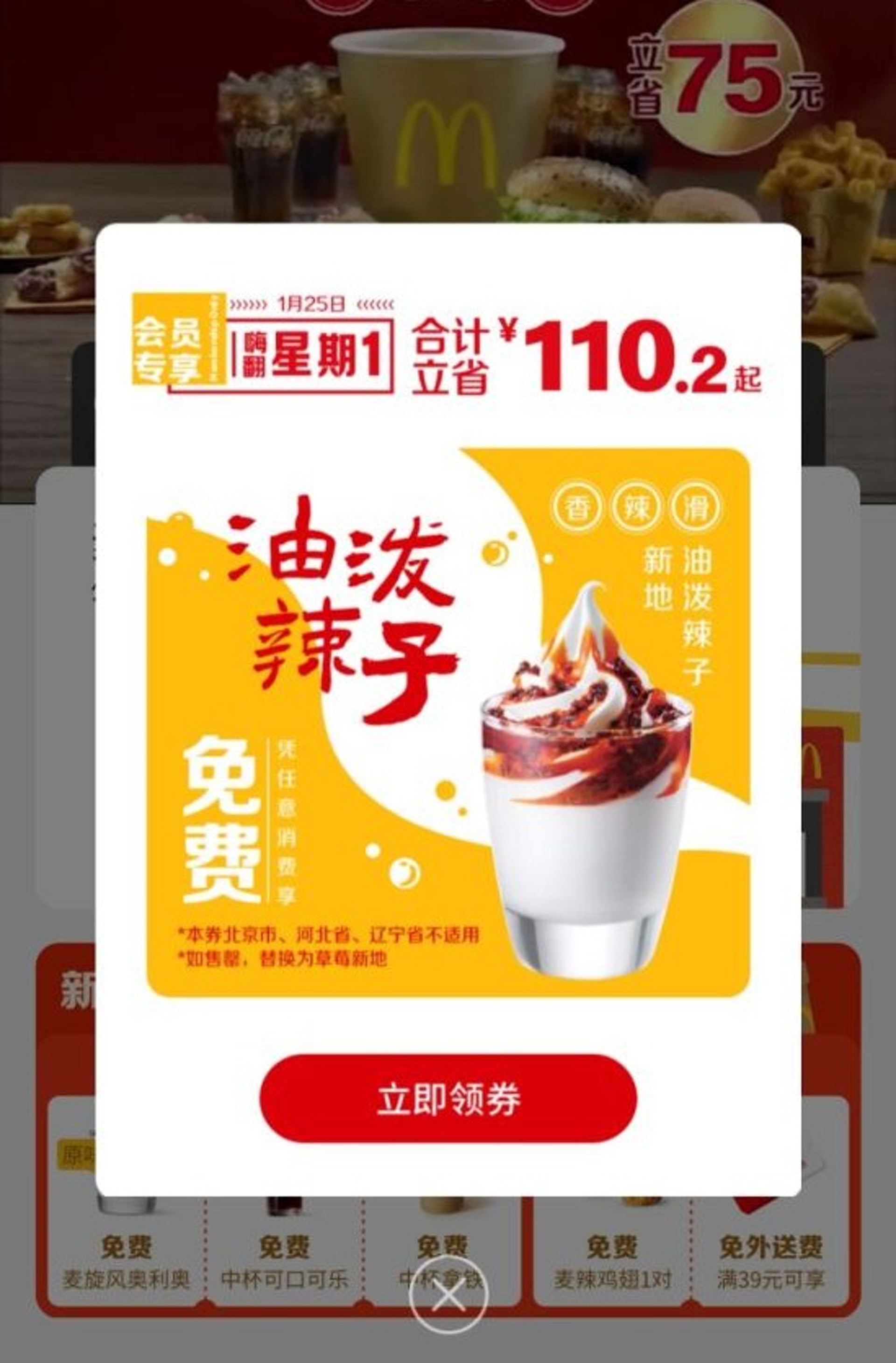 ▼「油潑辣子」是陝西方言,其實是辣椒油的一種。這種辣椒油熱辣醇香,用途非常廣泛,吃麵、喝湯等等都能拿來調味,但將它跟冰淇淋搭配起來,就顯得非常另類。麥當勞推出的這款「油潑辣子新地」並不是列入菜單的新品,而是「憑券任意消費免費享」,顧客需要在微信小程序的麥當勞上領取免費券,僅限1月25日使用。