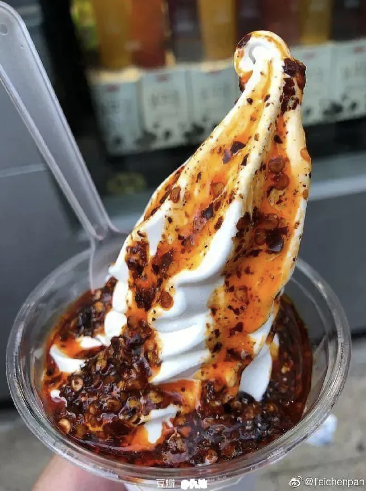 ▼「油潑辣子聖代」更像一種吸引顧客的噱頭,這一消息果然引發網友討論,大家紛紛表示:「冰火兩重天」、「拉肚子首選」、「真的不想吃」、「是嫌活太長嗎」、「希望油潑辣子出現在它該出現的地方,比如麵裡」。不過也有人表示,類似的「油潑辣子雪糕」早就出現了,西安、重慶等地都有賣。