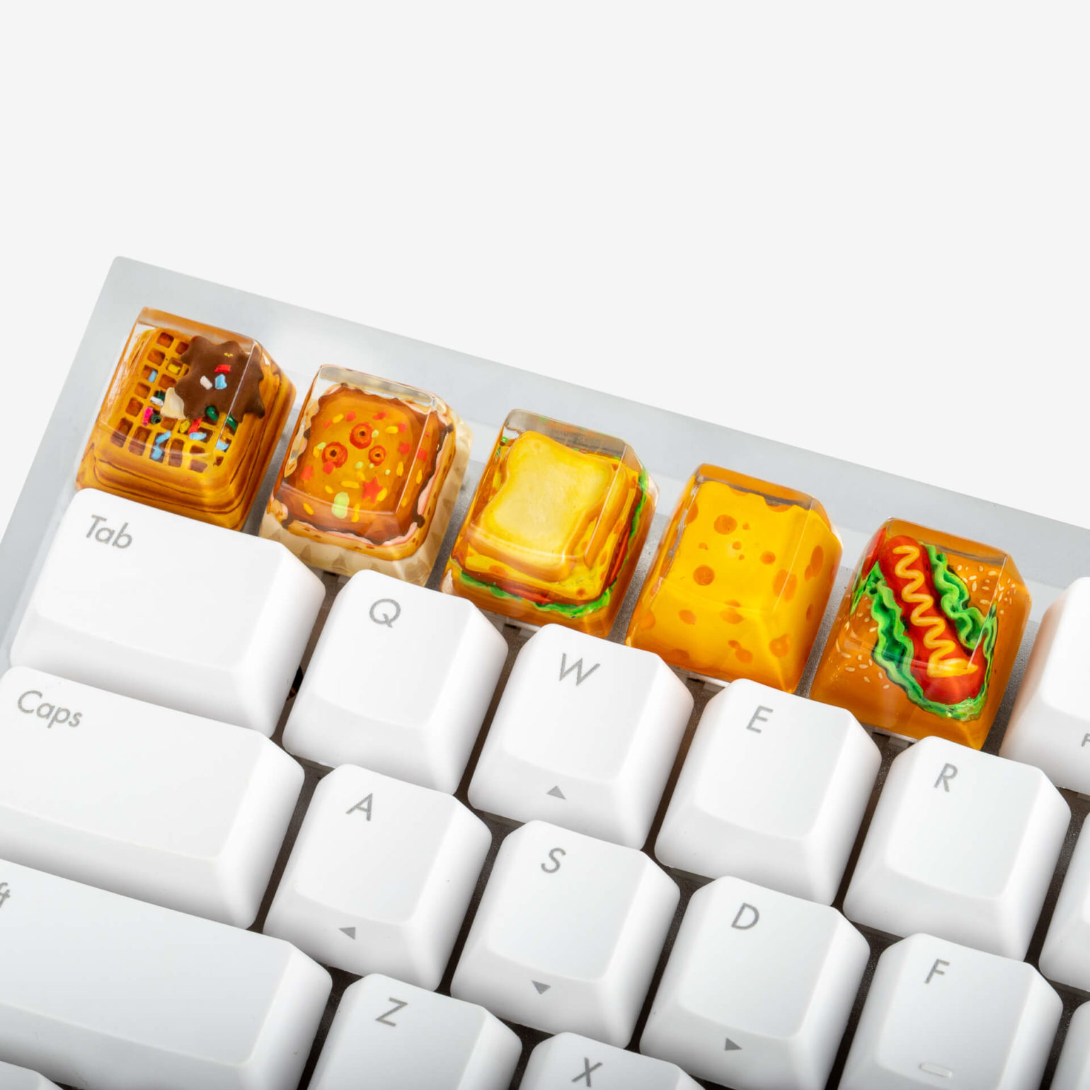 ▼這些鍵帽有漢堡、起司、華夫餅、甜蛋糕、三明治造型: