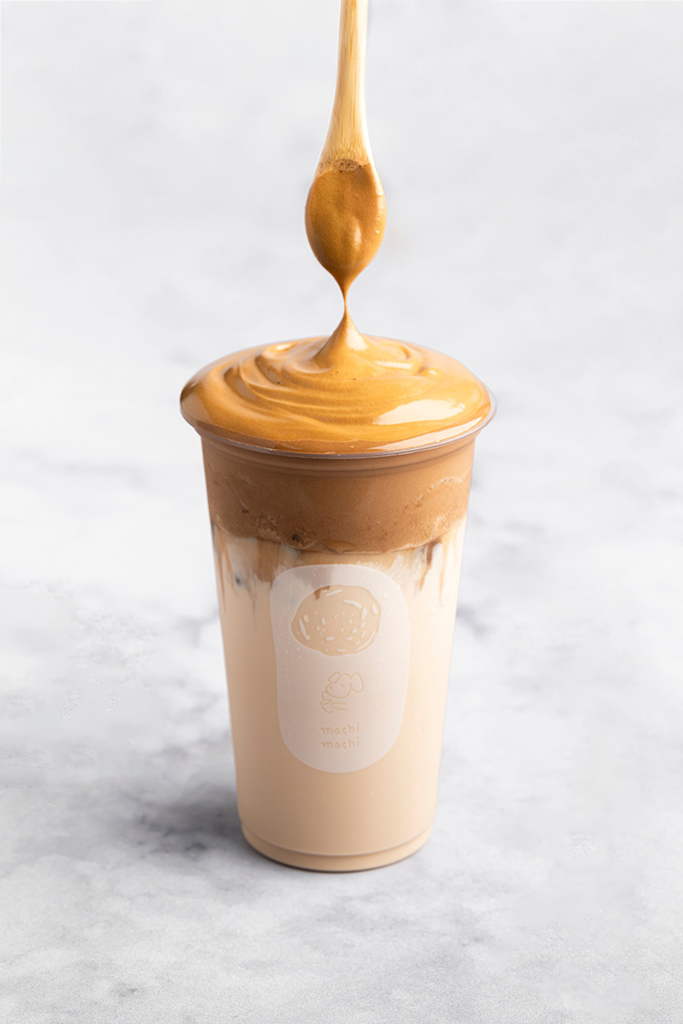 ▼「焦糖咖啡奶茶」則是將優質鮮奶茶底淋上厚重綿密的奶蓋,再搭配烘焙香氣十足的咖啡慕斯醬,最後以金黃香甜的焦糖醬點綴,每一口都能感受到咖啡甘苦、奶茶香醇、奶蓋綿密、焦糖濃稠香甜等層層分明的幸福。