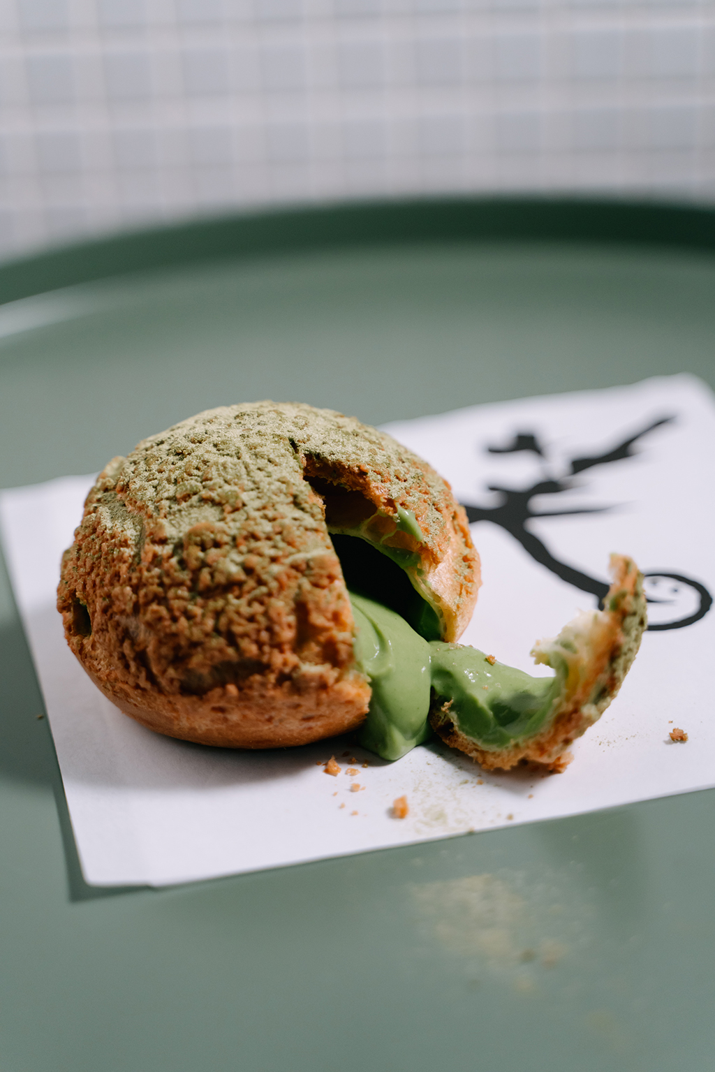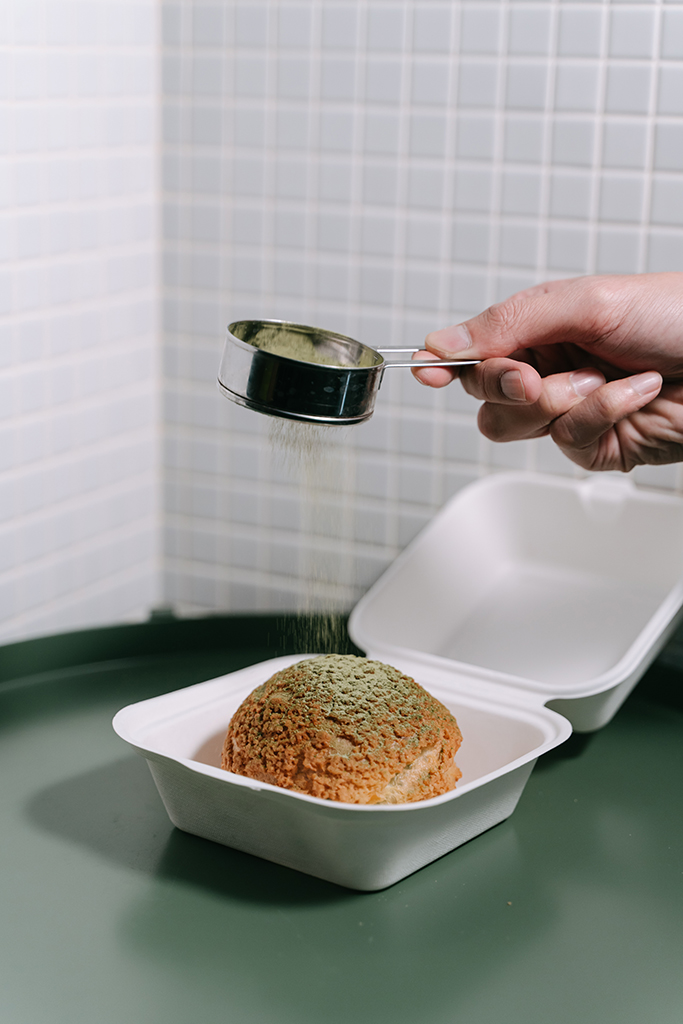 ▼而日式職人泡芙「有口芙」的每顆泡芙都是純手工製作,這次抹茶季有口芙推出期間限定的「小山園抹茶拿鐵泡芙」,酥脆波蘿外皮裹著海量內餡,搭配由小山園若竹等級的抹茶粉混合卡士達內餡製成滑順的抹茶拿鐵醬,入口即化、甜而不膩。