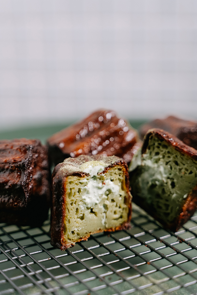 ▼「Delle Bakery 可麗露專賣店」推出限定版本的「抹茶可麗露」使用法國頂級米歇爾白巧克力,還採用日本小山園若竹等級抹茶粉,將它融入在焦脆外皮、濃郁內餡的可麗露裡,同時加入了抹茶酒,讓你一口吃下,感受到三種不同層次的日本茶風味!充滿內餡抹茶味醇厚的氣息,與白巧克力巧妙的搭配,既不會掩蓋身為主角的抹茶風味,外脆內軟還讓口感層次多變。