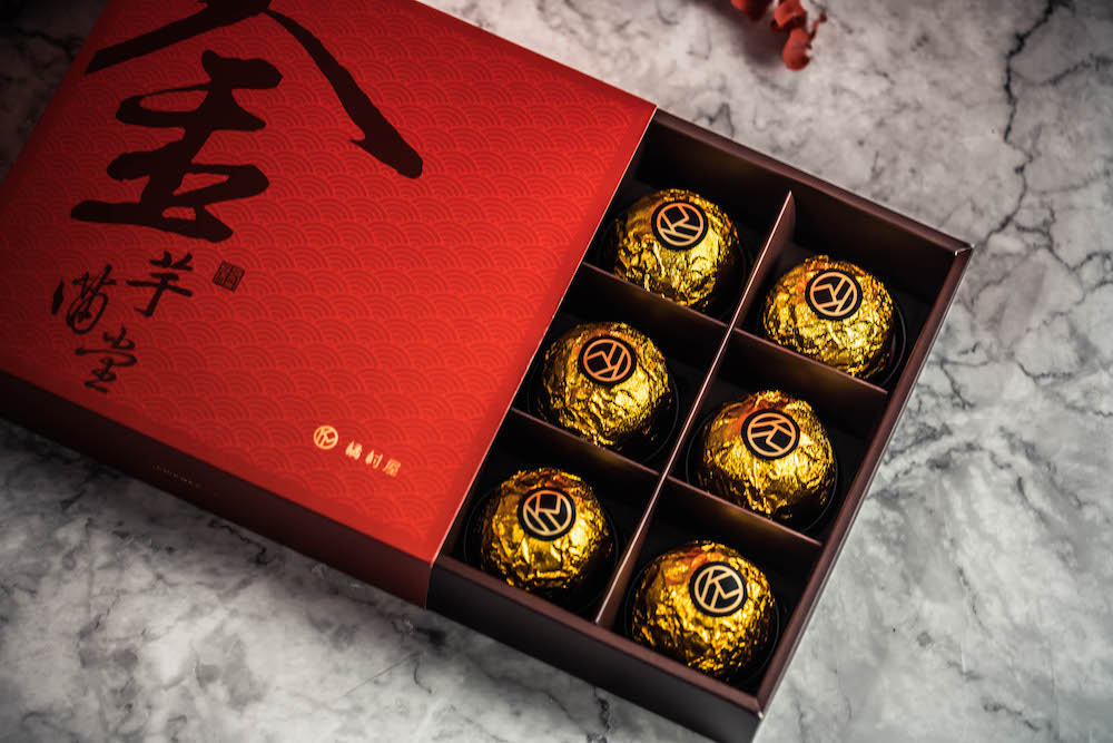 ▼橘村屋2021春節首度推出大氣的「金芋滿堂酥」禮盒,以喜氣洋洋的大紅配色、搭配飄逸黑字「紅美黑大方」,再用金沙鋁紙作為內裡芋頭麻糬酥的小包裝,華而不奢的風格非常有質感、讓人開盒瞬間眼睛一亮。