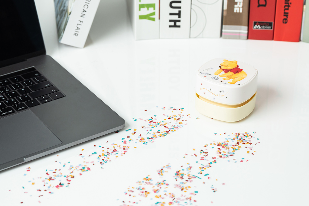 ▼「小熊維尼系列迷你隨身吸塵器」售價 699元,迪士尼正式授權,彎下腰的可愛維尼 x 小清新花草圖樣,點綴桌面空間!小巧便攜,操作便捷,隨手吸一吸、保持潔淨,吸力強勁,「鍵盤縫隙間」的粉塵也能乾淨溜溜,輕鬆搞定灰塵、小碎屑 (橡皮擦屑 /紙屑 /餅乾屑,上升式排風,吸的同時防止灰塵碎屑亂飛,搭配「可清洗過濾網」,重複使用響應環保,不藏污納垢,清理集塵盒不費力!