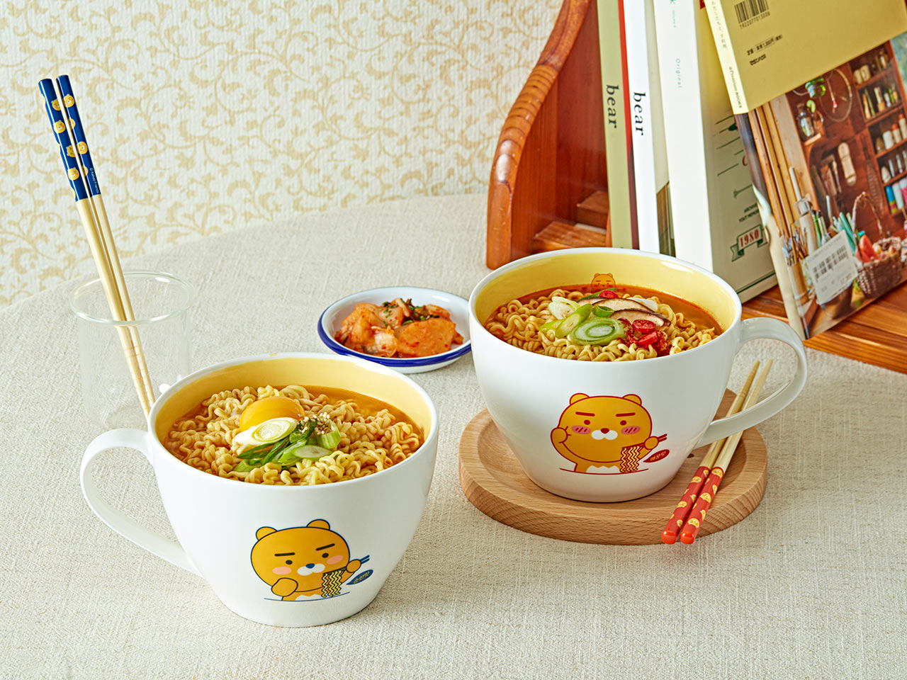 ▼真拉麵與「KAKAO FRIENDS」聯名,首先就是這大大一杯「萊恩泡麵碗」,兩款不同造型吃泡麵的萊恩盡顯吃貨本色,捧著這居家必備的杯碗來吃泡麵太治癒啦~