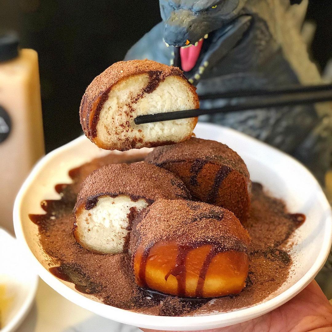 ▼另外這裡還有販售人氣超高的「炸饅頭」甜點,外酥內扎實的饅頭淋上厚厚一層巧克力醬,搭配起司一起吃更是對味,甜滋滋的饅頭當作飯後甜點再適合不過了!