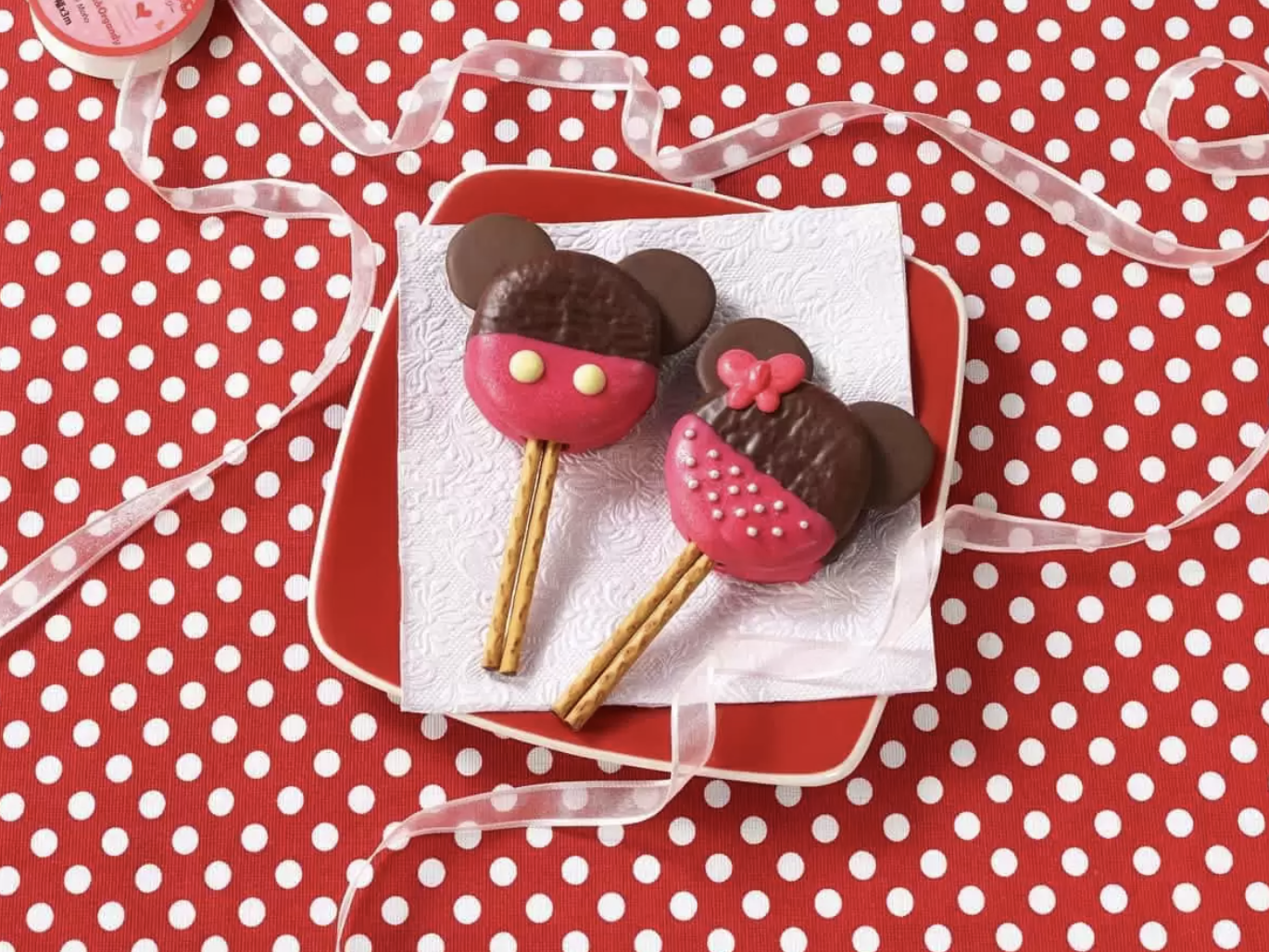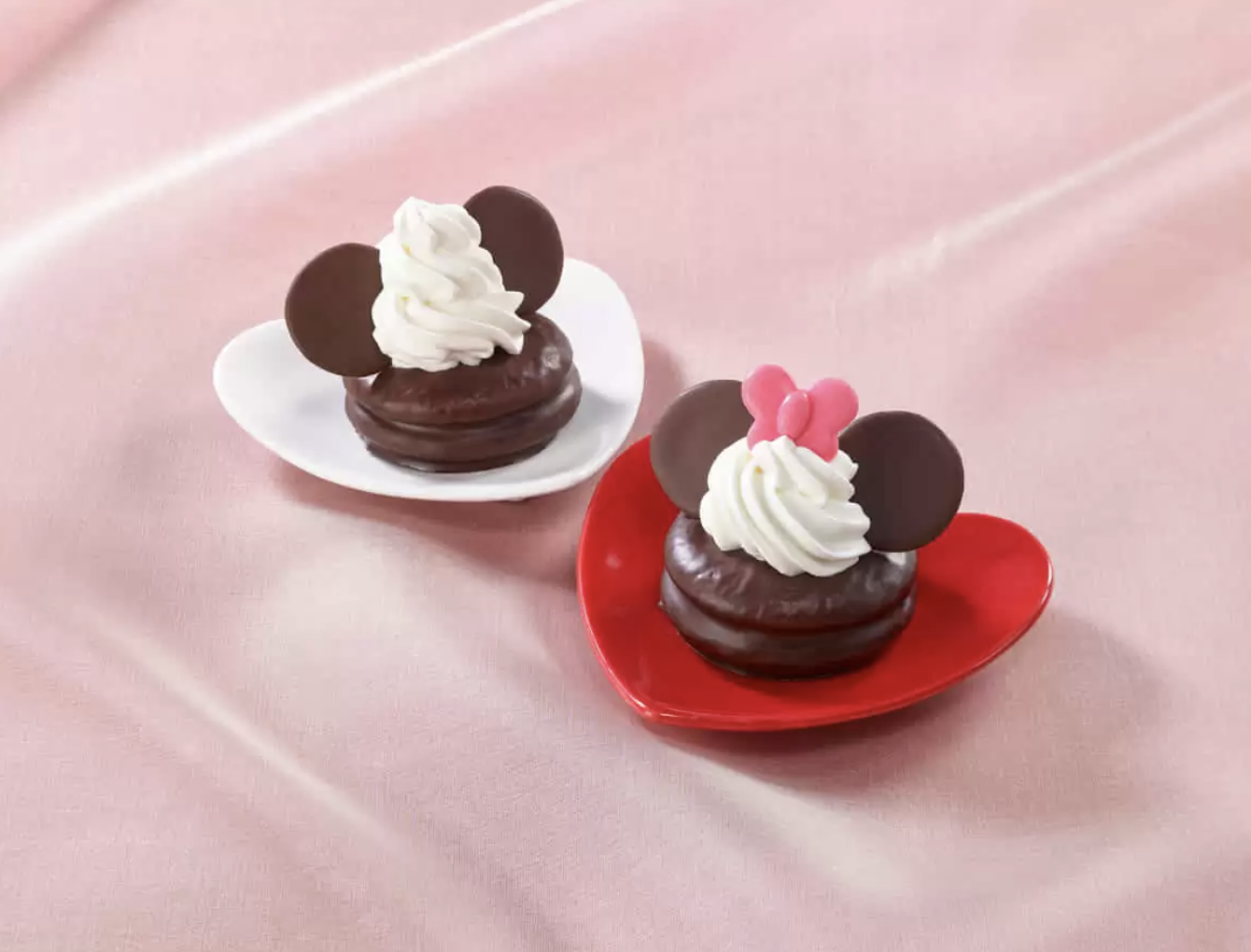 ▼除了可以的單純享用「濃郁巧克力」與「草莓巧克力」兩種口味以外,也可以自己製作獨特的吃法喔~可以將巧克力派拼成米奇和米妮的造型,並在巧克力派上做點裝飾,可可愛愛的米奇和米妮就上桌啦~