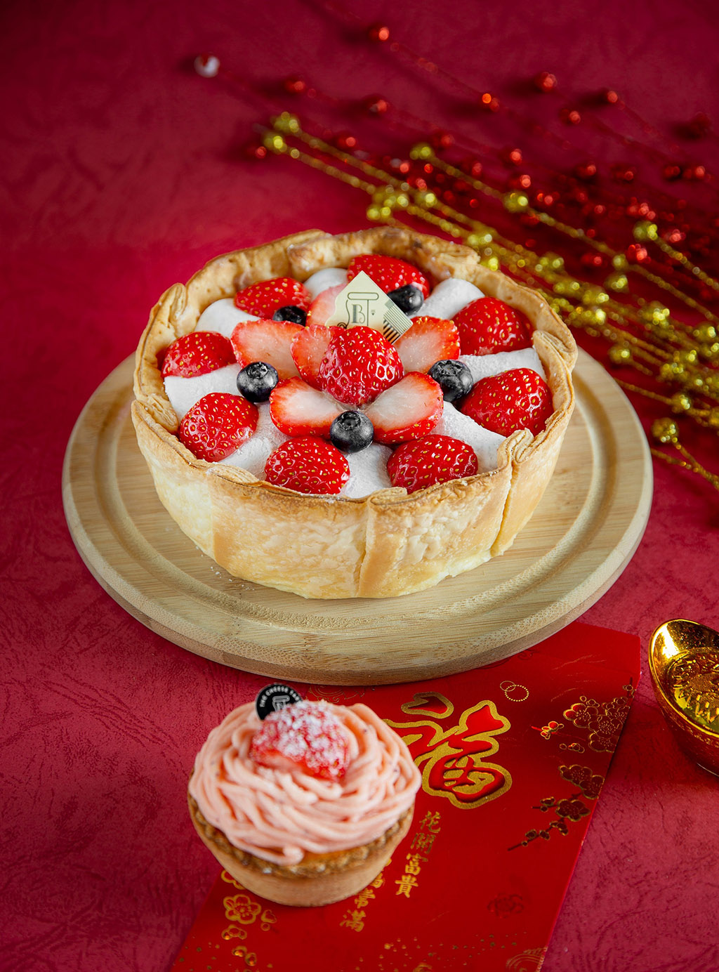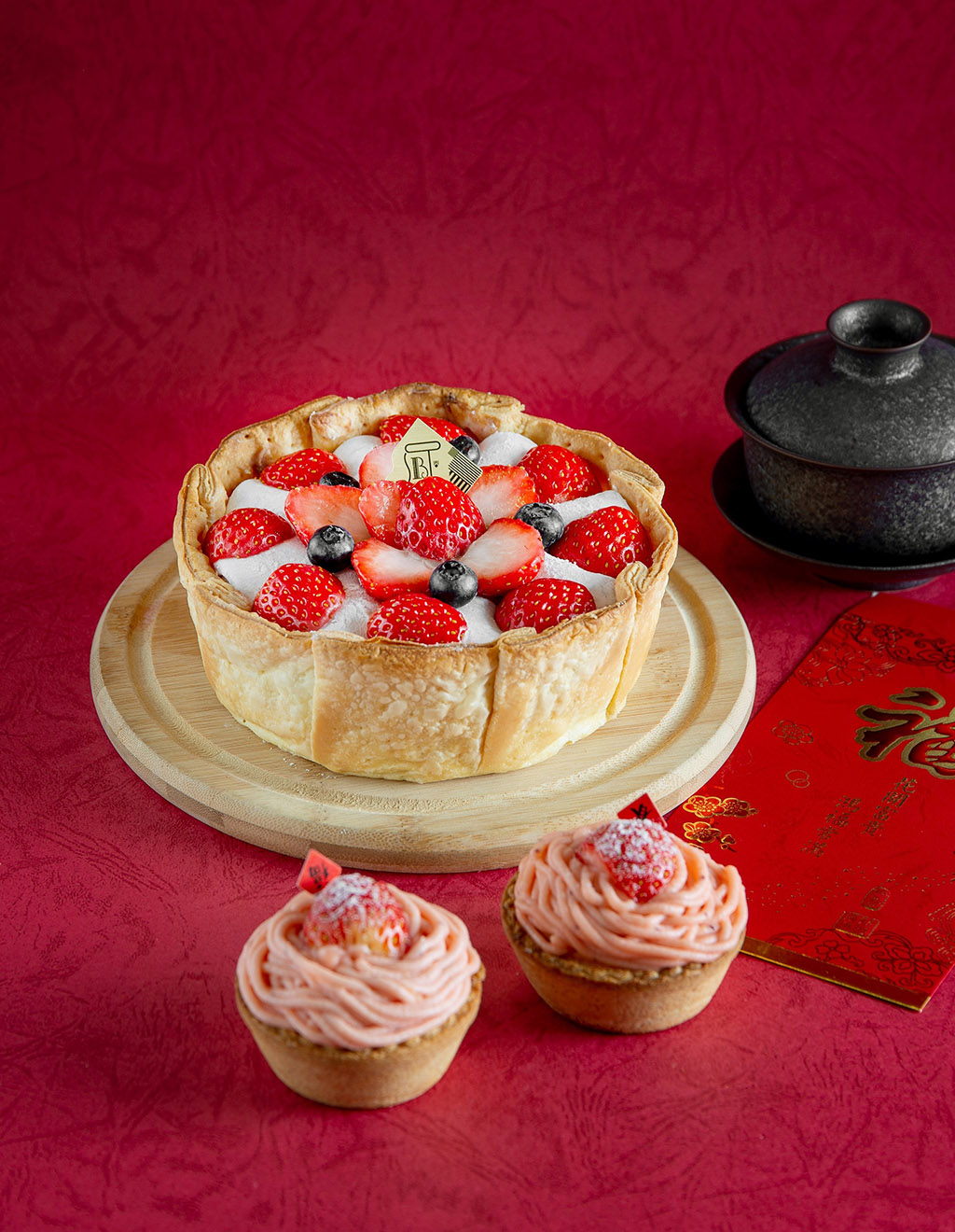 ▼而PABLO 迷你起司塔「草莓圓舞曲」,每顆88元,在經典起司塔中,擠入融合藍莓、黑莓、覆盆子、歐洲酸櫻桃的綜合莓果醬,並將含有顆粒的草莓醬與卡士達鮮奶油結合,層層螺旋擠在塔面上,像是白朗峰的蒙布朗造型一樣新奇、有趣,最後點綴上新鮮草莓,提供想要一個人獨享的人,吃出『莓』好新年的喜氣。