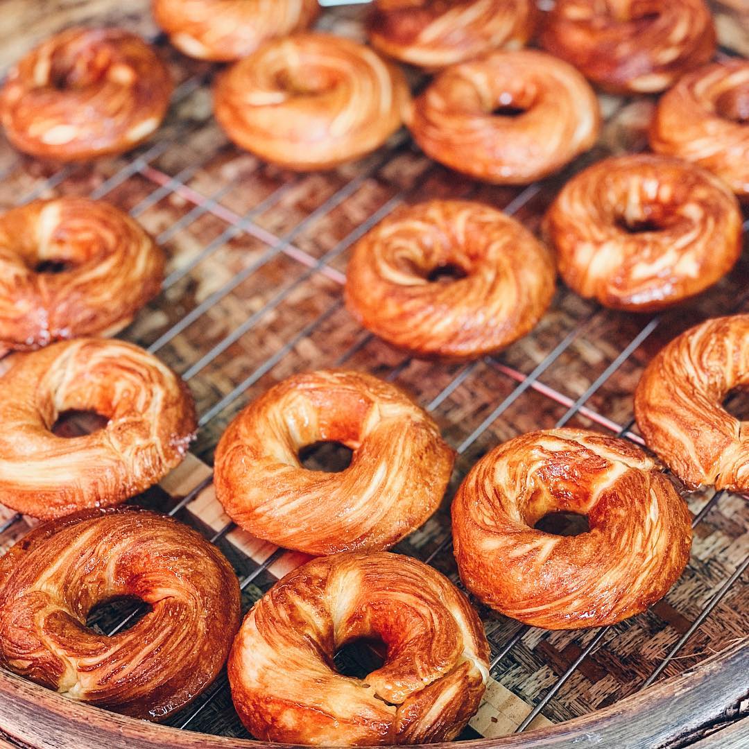 ▼有別於一般的台式甜甜圈,「百年檜木甜甜圈」有著神似可頌的外皮,一口咬下是香酥的外皮搭上有點嚼勁的內層,甜而不膩的滋味讓人忍不住一口接一口!
