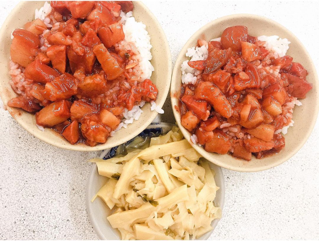 ▼而這碗紅紅的「肉燥飯」也是偏甜的口味,紅紅滷汁「攪」在飯上瞬間讓人垂涎不已,想要馬上吸哩呼嚕一通開嗑;肥肉偏多的肉燥飯,滷得綿滑中帶點微彈、夾雜瘦肉的口感,帶著紅麴甜香吃起來油香四溢,還會有點黏嘴巴的感覺,傳統古早味就是讓人欲罷不能。