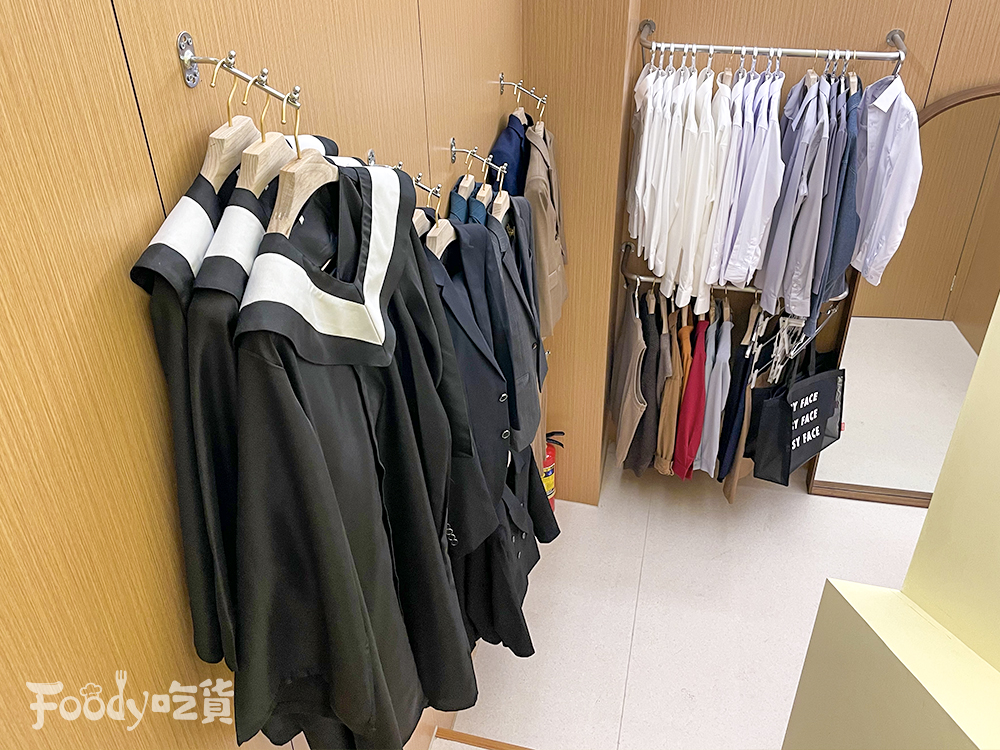 ▼店內一隅還有專門讓顧客整理妝髮的梳化間,美髮設備應有盡有,另外還有提供西裝、襯衫、畢業學士服等等服飾,讓顧客可以拍攝出最專業的形象。