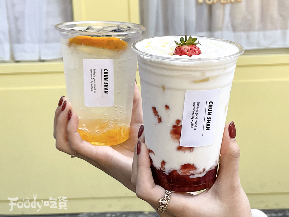 ▼春山Dessert的飲品外帶杯同樣是鮮黃色調,拿著飲料杯在店門口拍照也非常吸睛。不過如果你還拍不夠的話,還有「春山相館」可以幫你拍攝最專業的證件照、形象照。