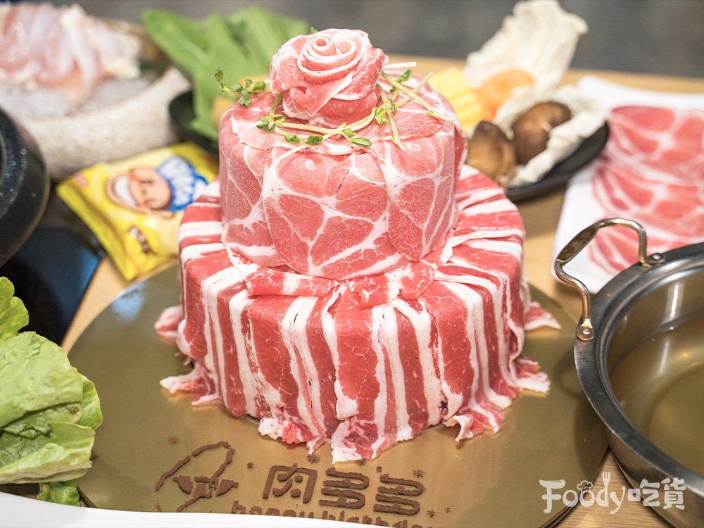 ▼而來到肉多多,怎麼能錯過店裡的招牌「肉蛋糕 16oz $499」呢?超級吸睛「肉蛋糕」以美國雪花牛搭配活菌豬層層堆疊,同時在蛋糕的最上層還用肉片製作成可愛的小花,怎麼看都非常討喜又可愛~不論是想讓相機先食或者是為朋友歡慶生日,點肉蛋糕準沒錯!