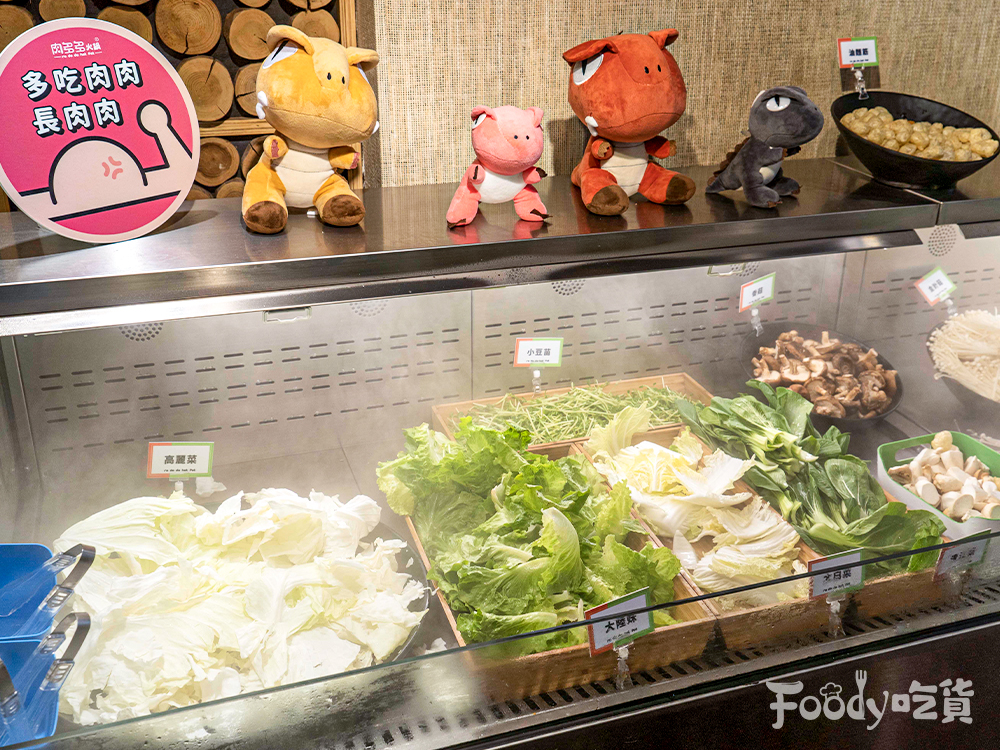 ▼值得一提的是,「肉多多」的鮮蔬自助吧真的超級狂,超過20種的季節時蔬包含高麗菜、大陸妹、玉米、番茄、金針菇等,還有豐富的火鍋料可以讓大家夾好夾滿,另外還有多款甜點、飲品和冰淇淋可以享用,完全就是要讓大家飽到肚子圓滾滾才罷休~如果只想單純吃菜的朋友們,也只需要低消$268就可以享用鮮蔬自助吧吃到飽啦!
