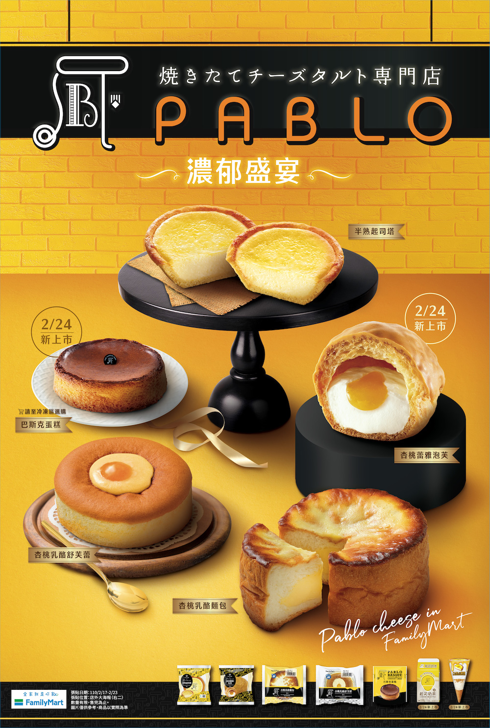 ▼PABLO這次可說是大跨域!不僅將『經典原味起司塔』的重點元素,變化出超人氣的甜點、麵包、冰淇淋、奶茶等甜品完美呈現外,也是首度與便利商店品牌聯名並進行上架銷售,首度推出「濃郁盛宴」,讓全台想吃PABLO的消費者只需前進全家便利商店,即可購買到從早餐到下午茶甚至消夜、好友相聚或個人獨享,很療癒心情的PABLO商品!