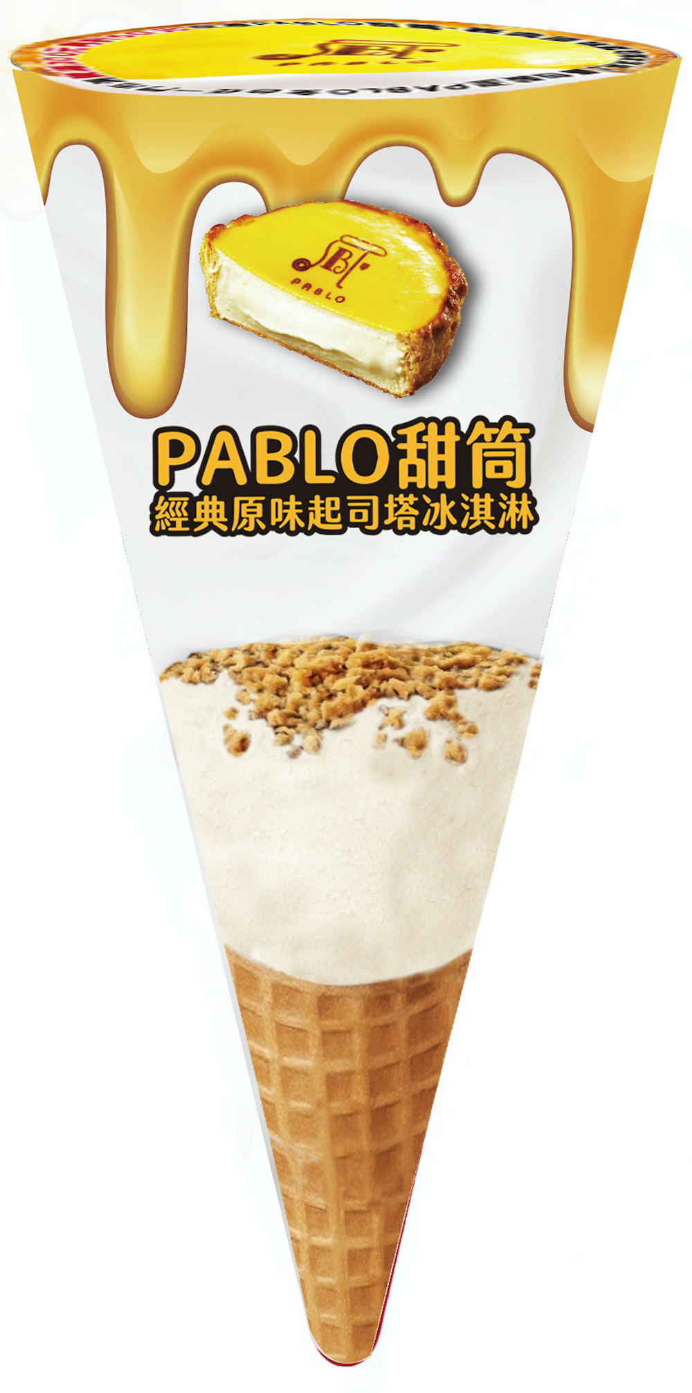 ▼「PABLO甜筒 經典起司塔冰淇淋 」(NT$ 59)使用脆餅皮加冰淇淋形式重現熱銷原味起司塔,起司冰淇淋融合濃郁奶香,外層用白巧克力,將起司塔用甜筒形式重現,獻上超多層次的驚喜風味與口感。