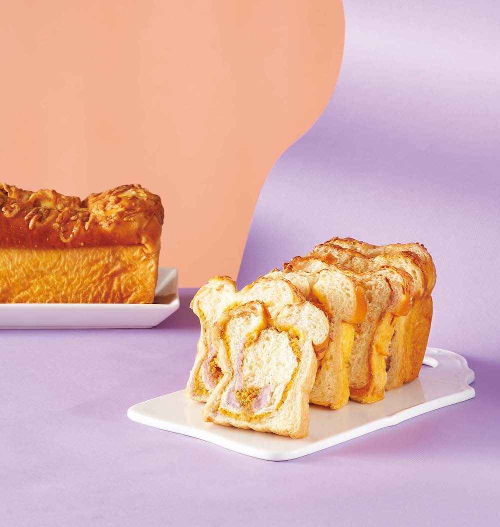 ▼哈肯鋪「芋見四重奏吐司」(2入520元、10入1550元):嚴選大甲檳榔心芋頭泥佐以香濃蛋黃金沙,再搭配台灣豬肉鬆,並以乳酪絲在吐司表皮烘烤成為金黃脆皮,軟綿的吐司為基底,層次感超奢華,每一口都超滿足。