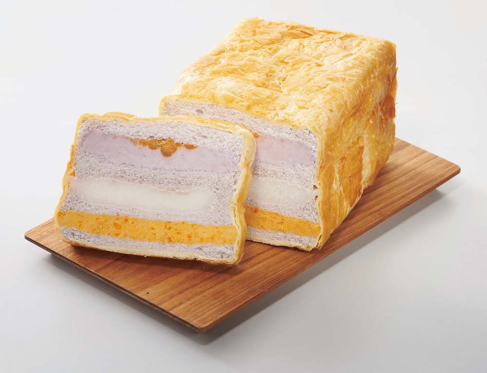 ▼法蘭四季「芋泥流沙起酥三明治」(1盒430元、10盒2200元):使用芋頭吐司加入濃郁芋頭餡、麻糬、流沙蛋黃,加熱後鹹香美味,顛覆傳統滋味!