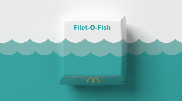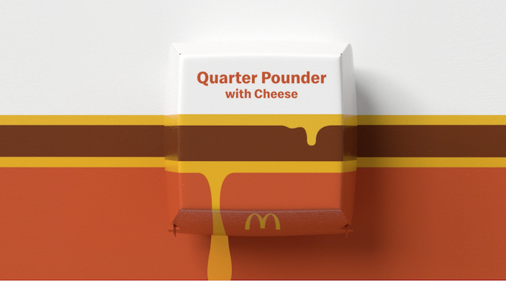 ▼而「四盎司牛肉堡」主推起司與牛肉,包裝上的插圖則是以融化的起司配上厚實牛肉片。「麥香魚」在包裝上畫上藍白波浪,呈現出海洋的意象。